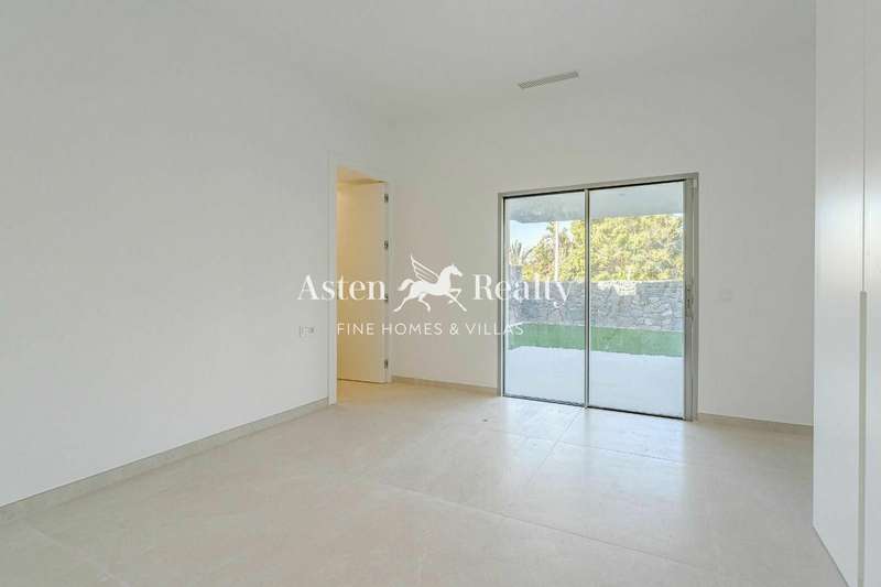 On this same floor, you will find two double bedrooms with en-suite bathrooms. The master bedroom has direct access to the terrace and the private heated swimming pool, while the second bedroom connects to the back terrace and the garden. Outside, the main terrace, garden, and heated swimming pool offer a perfect setting for relaxing, holding meetings or simply enjoying the privileged climate of the area. The villa also comes with private parking for two vehicles.
