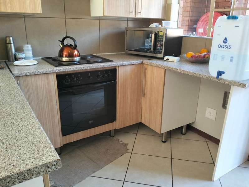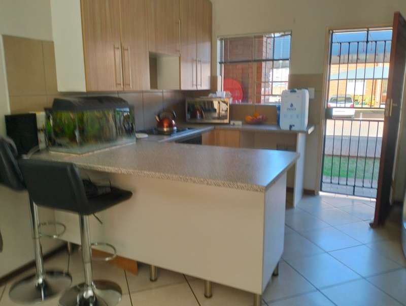 Great Investment opportunity not to be missed Upon entering this freshly painted ground floor unit, you are welcomed by a spacious living area. Then you get into an open plan kitchen with natural wood finished cabinets. A breakfast nook with ample cupboards space. You also get enough space for your 2 appliances. This wonderful home will offer you two bedrooms with build in cupboards. You get a full bathroom. Going through the living area is a sliding door opening a patio. Giving the unit easy access and having to entrances. The unit is situated in a secure complex with double security and a 24-hour access control. There is a park in the complex for your little ones playtime. The unit also comes with a covered parking and there is enough space for visitors parking. The home is located close to all amenities. With Mall @ 55, Rauslouw Corner even a private hospital and wellness centre close by. You get schools close to your area. You will have easy access to major towns, as you will be a few kilometres from major roads, N14 and R55. Do not let this opportunity pass you by. Call me now to view.