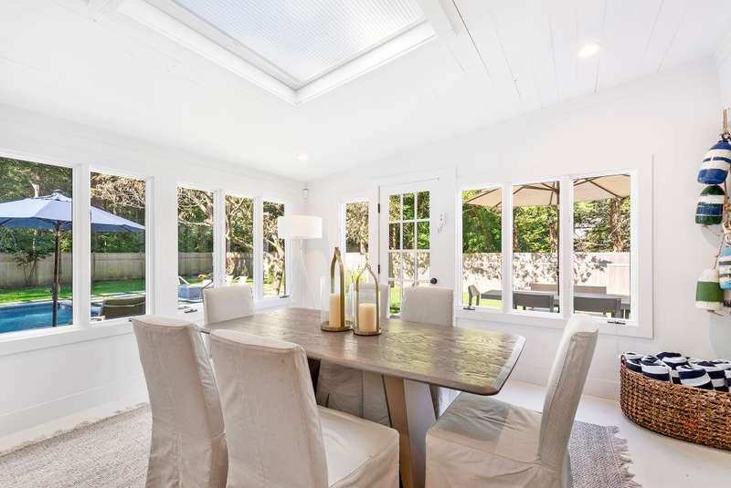 Rental Reg # 23-1290 Welcome to this beautifully renovated 4 bedroom and 3 bathroom home in Clearwater Beach East Hampton. Nestled in this peaceful and highly sought-after neighborhood with private beach access, this property offers the perfect blend of modern luxury and timeless charm. As you walk into the home, you are greeted with amazing natural light from the wall of windows in the rear of the home and skylights. There is a separated living room with fireplace that is great for lounging and entertaining. As you walk further, there is open chefs kitchen, dining area and family room. On the left of the living area there are three bedrooms and two full baths including the ensuite primary with outdoor deck and shower. On the right side of the living area is a junior ensuite primary. When you walk at back, you are greeted with a a 18x36 unite pool surrounded by a beautiful manicured green lawn. There is ample outdoor seating and dining area as well for your pure enjoyment for the summer days and nights. Don't not miss this opportunity to relish in Clearwater beach with modern luxuries