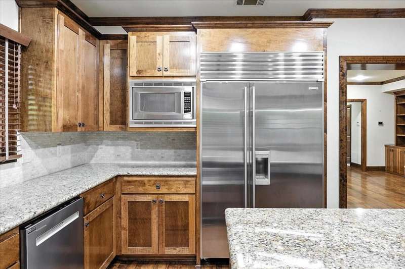This stunning home offers space, elegance, and versatility! The spacious layout begins with a welcoming entryway flanked by a formal dining room and a private study. The kitchen is a dreamfeaturing a large island, granite counters, stainless appliances including a Wolf oven, built-in fridge, breakfast area, and a wet bar that connects to the dining room. The main living area offers large windows, gorgeous hardwood floors, custom wood cabinetry, and a wood-burning fireplace with built-ins. High quality stained maple trim but seller is willing to offer a paint allowance if buyer wanted a lighten the trim and cabinets. The oversized primary suite has a private entrance and a luxurious bath with a separate tub and shower, two sinks, and a massive walk-in closet. Also downstairs: a half bath and a laundry room. The main stairway leads to two large bedrooms and a media room (all with brand-new carpet) plus a large full bath. A second, private stairway at the back of the home leads to a fourth bedroom with gorgeous wood floors, built-ins, and an ensuite bathperfect for a guest suite or teen retreat. Attached 2-car garage completes this incredible home. Located in Fort Worths established and highly sought-after Monticello neighborhood, this beautifully designed home blends great quality and timeless style. Surrounded by mature trees, with quick access to Dickies Arena, Camp Bowie, and some of the citys best shopping and dining, the location is as exceptional as the home itself.