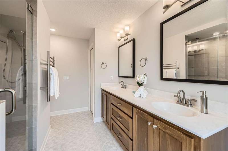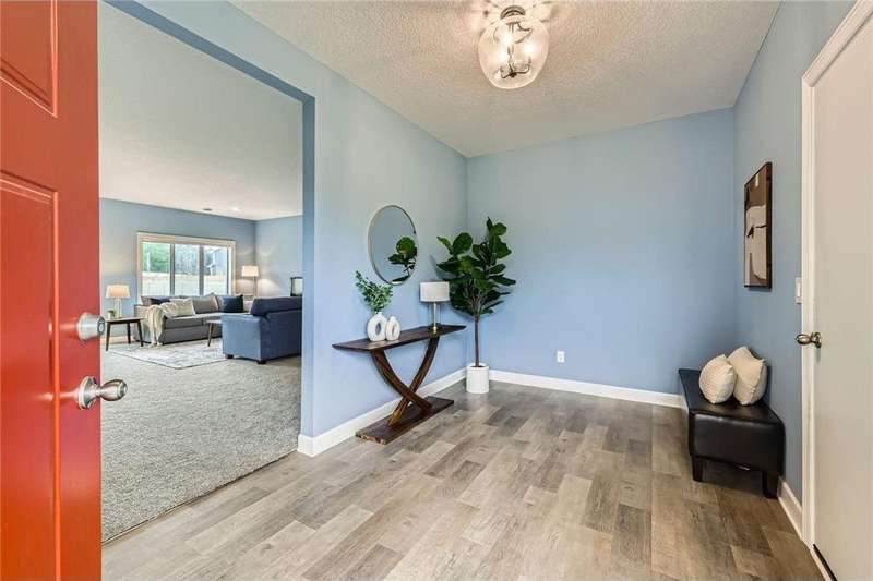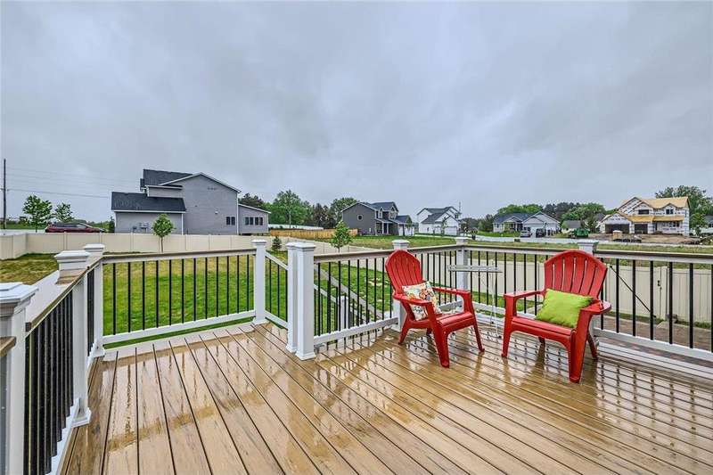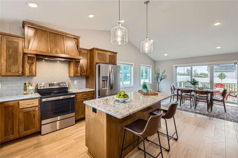 This Dane Allen home is under three years old. Complete with a vinyl privacy fence, composite deck, gorgeous brick patio and a number of growing trees, this really is better than new. This four-level split was designed with a unique, oversized foyer providing ample space for shoes, coats, backpacks, and lingering MN goodbyes. Located in the desirable Andover school district, this home has the ever so popular 3 bedrooms on the upper level along with the laundry room. The 4th bedroom is on the main level across from what is designed to be a theater room. Maybe you need a 5th bedroom or home office instead? Finish the walls and flooring to design exactly what you and yours need. The primary bedroom, walk-in closet, and ensuite bathroom is truly a luxurious destination to relax and recharge. The kitchen and dining room also beam with natural light from oversized windows, highlighting the custom maple cabinetry, granite counter tops, and walk-in pantry. The dining room is plumbed for a butler's bar, making entertaining on the deck a breeze. The great room walks out to the patio and is just steps from the kitchen, this design has families and guests in mind. Come see the unfinished lowest level in person, use it for storage, create a home gym, cozy family room, or easily add another bedroom with the existing egress windows. Come see a home with a thoughtful design, completed exterior projects for instant joy this summer, and a couple areas to customize and add your own value and character.