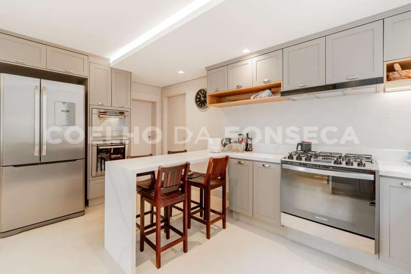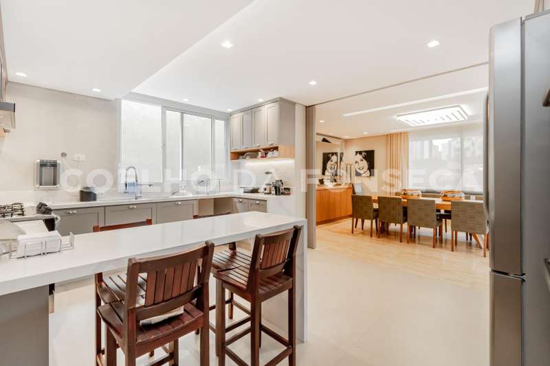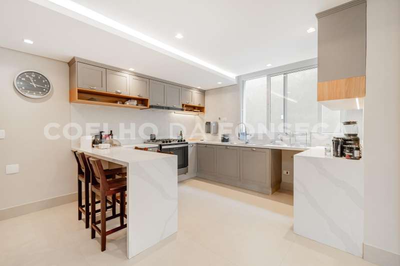 Com piso em marmore travertino, repleta de marcenaria, cozinha linda e aberta para a sala de jantar.