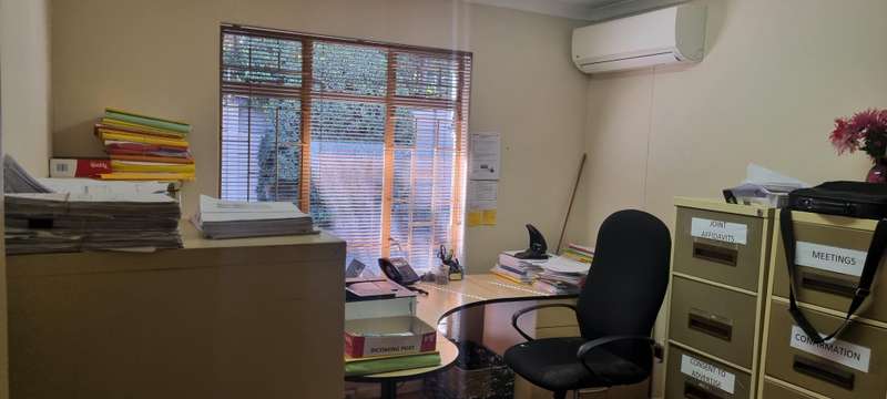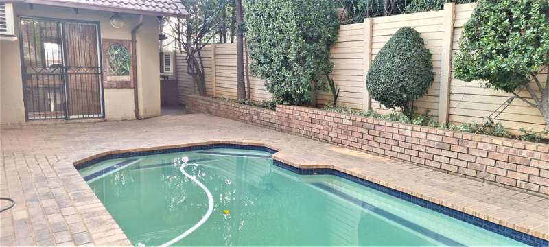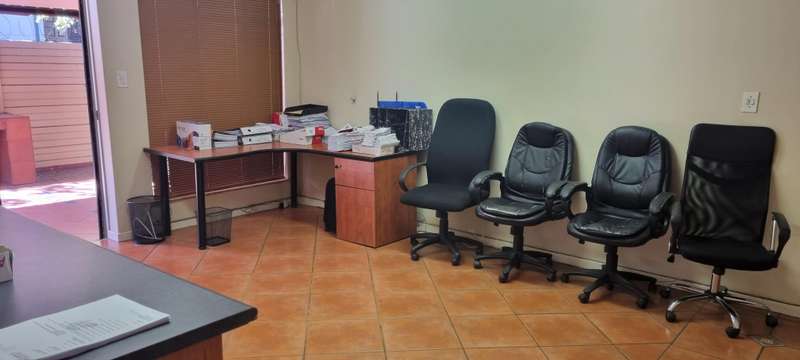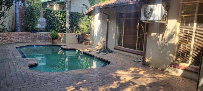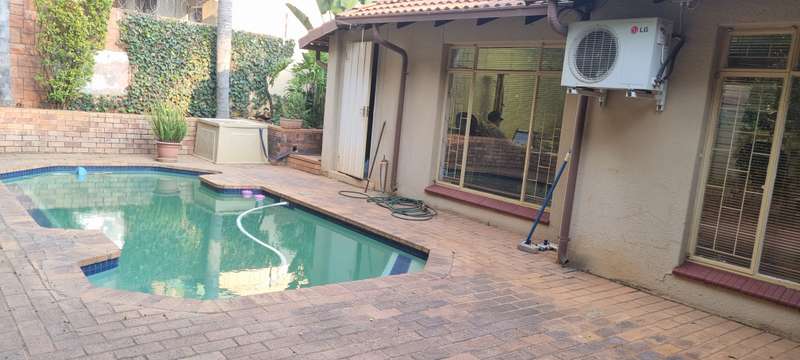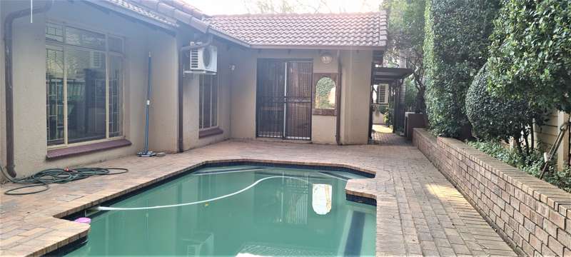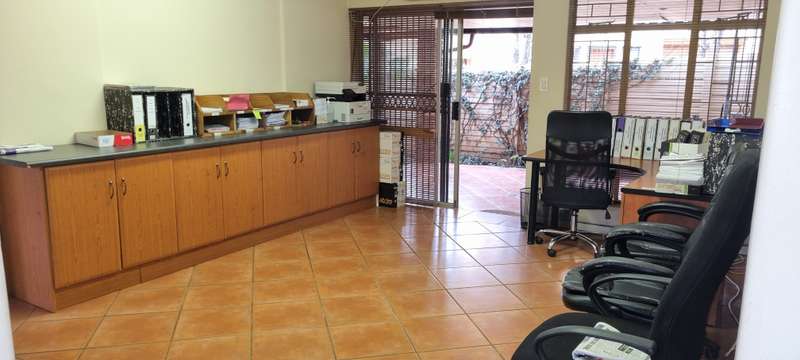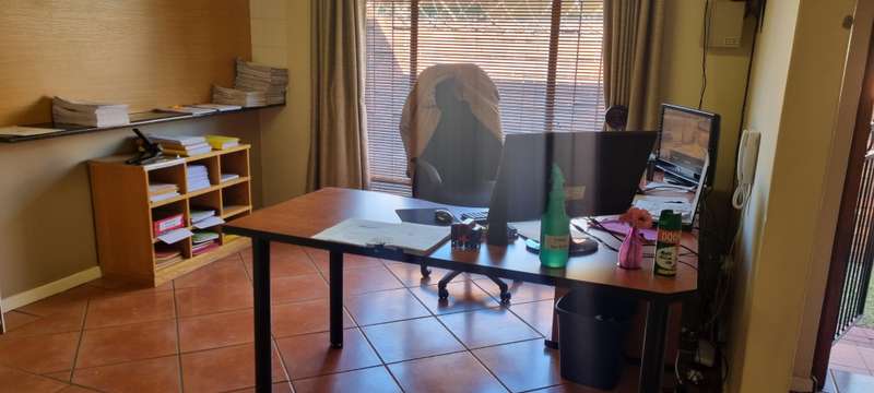 This property is brand new in the market, excellent location and is being used currently as offices (not zoned for business rights). This property is tiled throughout with 7 air conditioners which were recently serviced. Three spacious living areas with an oak kitchen. The one living area has been fitted with a sliding door which will make you work from home an excellent opportunity. The kitchen is fitted with an under counter Defy stove and hob plus an extractor fan and granite tops. Enough space for your double fridge and electrical appliances. The first bedroom has been opened with the study which has another entrance directly from the outside (so now double room) with build-in-cupboards and air conditioner. The 2nd bedroom also fitted with air conditioner and cupboards. The guest bathroom consists of bath, basin and loo. The main bedroom is spacious, tiled, air conditioner fitted and cupboards (space for additional cupboards) and the en-suite consists of bath, shower, loo and basin. Outside you will find double garage and 7 carports, a patio and around the corner a lovely pool, storeroom, outside loo and shower as well as a wendy house. The security is excellent with alarm system, CCTV, security gates as well as burglar proof. The property is excellent located in the new Faerie Glen with excellent opportunity for the work-from-home family. Contact Gerda at RealNet RainMaker today to secure an appointment.