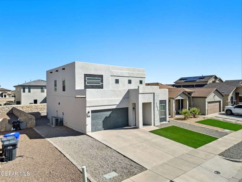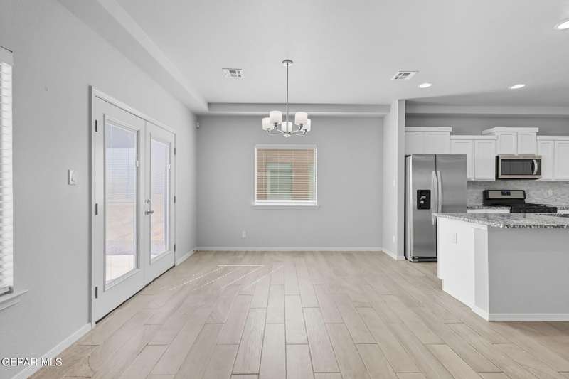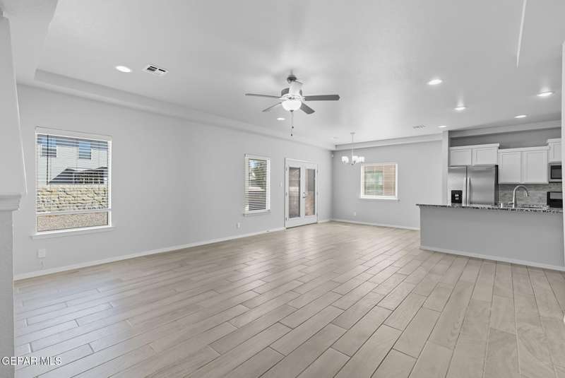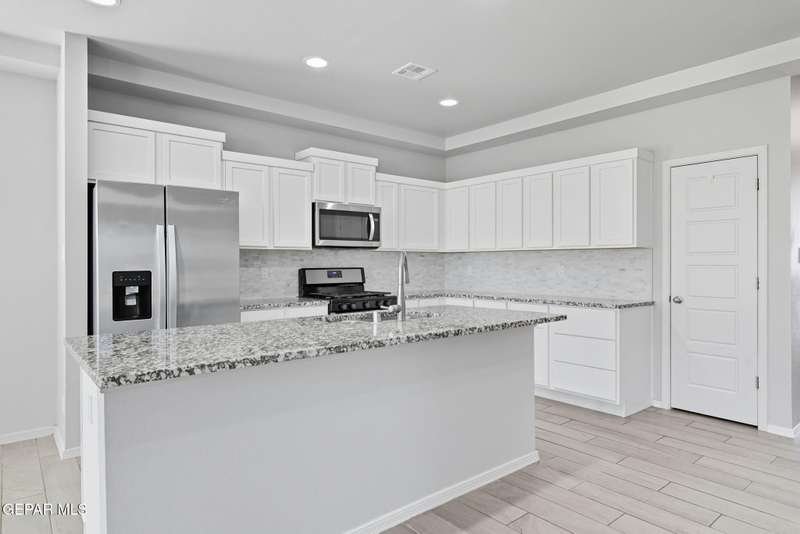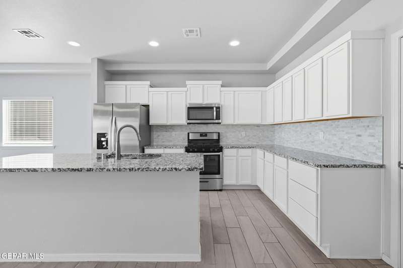 Step into this stunning, like-new home featuring 4 spacious bedrooms and 3 bathrooms. The heart of the home is the beautiful kitchen with crisp white cabinetry, granite countertops, and stainless-steel appliances-perfect for both everyday living and entertaining. The open-concept layout flows effortlessly, creating a bright and airy atmosphere. Enjoy beautifully landscaped front and backyards, ideal for relaxing or hosting gatherings. Each bedroom offers generous space, making comfort a priority. The epoxy-coated garage adds a sleek touch, and the location couldn't be better-just minutes from shopping, dining, parks, and with easy access to Fort Bliss. Whether you're relocating or upgrading, this home checks every box. Come see it before it's gone!
