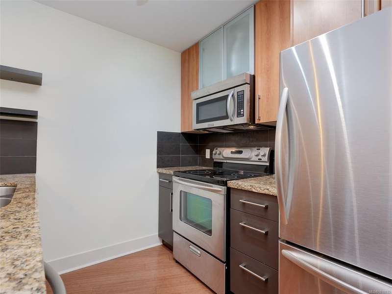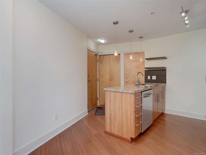 Bright and immaculate 1 bed condo in the popular Reflections building. Large windows let the light pour in. The roof-top pool, running track and outdoor patio take full advantage of the spectacular view. In-suite laundry, granite counters, stainless steel appliances, electric fireplace, and underground, secure parking make this a very desirable suite. Additional storage and underground car-wash bay are added advantages. Located in central Langford. Short walk to shops and services with very easy access to the Trans Canada Hwy. QUICK POSSESSION POSSIBLE.