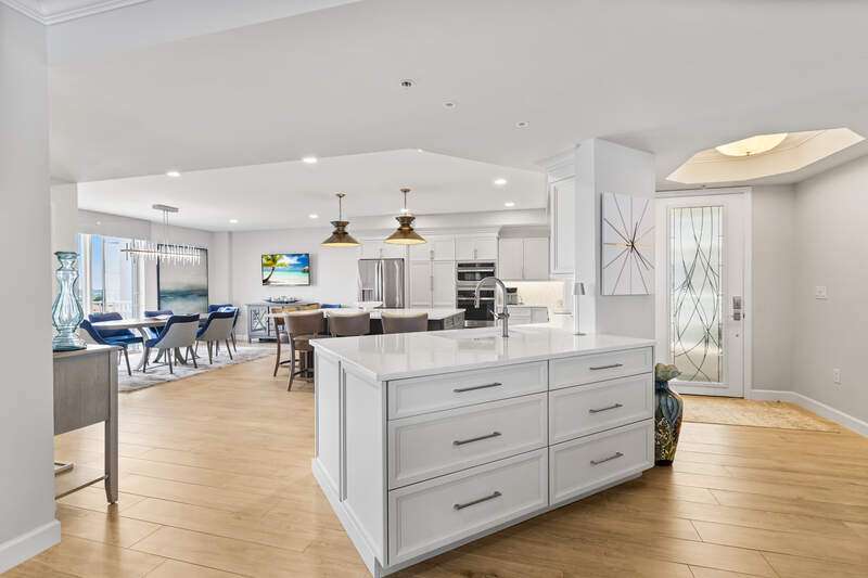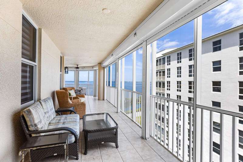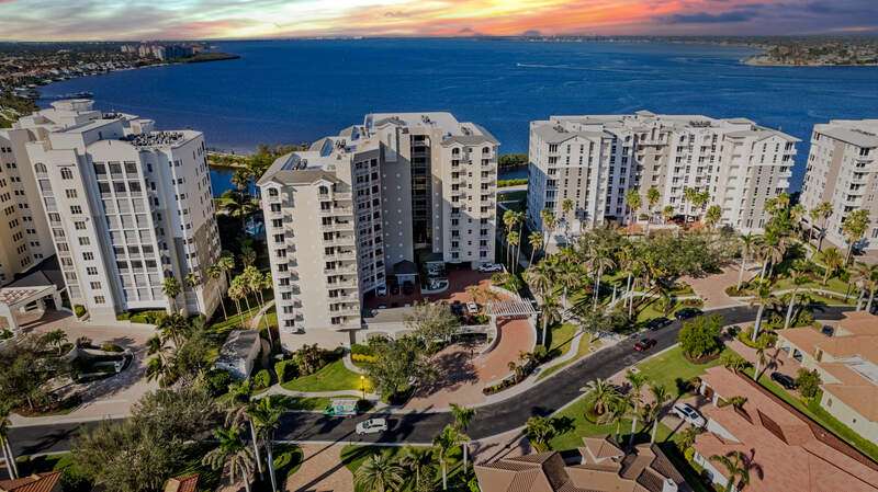BREATHTAKING VIEWS OF THE RIVER AND DOWNTOWN FORT MYERS ARE YOURS!! RARE OPPORTUNITY - TWO UNDER-BUILDING PARKINGSPACES INCLUDED! Perched on the 9th floor of The Shores III, this rarely available Danbury end-unit offers 3 bedrooms, 3 baths, and 2,660 sq.ft. of refined high-rise living. With two elevators serving the unit and two deeded parking spaces, convenience meets exclusivity. Step inside todiscover panoramic views of the Caloosahatchee River, golf course, lakes, and even Downtown Fort Myers. The wraparound lanai and multipleprivate balconies-one off the guest suite and another off the family/dining room-flood the home with natural light and provide unmatchedoutdoor living space. The remodeled 2022 kitchen is a showpiece, featuring quartz countertops, a massive gathering island, induction cooktop,custom cabinetry with under-cabinet lighting, and sweeping river views. Recent upgrades also include new tile flooring throughout the mainliving areas and fresh interior paint. The oversized primary suite showcases breathtaking river views, a spa-style bath with soaking tub, walk-inshower, and expansive walk-in closet. A second bedroom features its own ensuite bath and balcony, while the third bedroom sits next to a fullbath-perfect for guests or a home office. Additional highlights include: Hurricane roll-down shutters Private storage locker Two deeded under-building parking spots (rarely available!) Shores waterfront pool access LIMITED TIME - Sports Membership Joining Fee Reduced by $32,000!Secure a Gulf Harbour Sports Membership for just $20,000 while this promotion lasts. Private memberships are available for golf, tennis,fitness, and more. Gulf Harbour's 186-slip deep-water marina offers slips for purchase or lease-an ideal complement to this luxury lifestyle. Besure to watch the two videos showcasing the condo and marina!