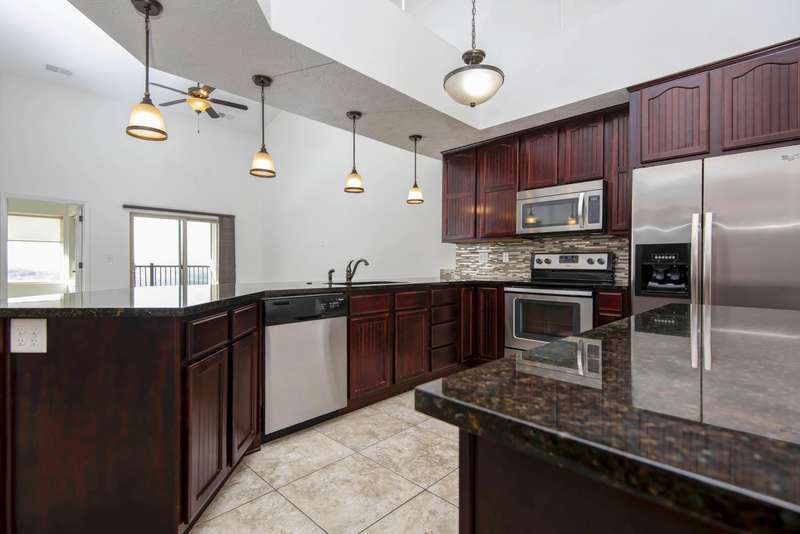 Stunning split three bedroom, three full bath penthouse condo located at the Majestic at Table Rock Lake with a 1 car 35' x 13.7' GARAGE INCLUDED!! This unit features breathtaking views of Table Rock Lake with a large open gourmet kitchen with granite counterops & stainless appliances overlooking the spacious living area with soaring ceilings leading to the covered outdoor patio as well as the enclosed heated & cooled sunroom. Adjacent to the sunroom is the oversized Master suite with full bath including dual vanities and plentiful closet space. Additionally on the main level is the laundry area and full guest bath with access to the second bedroom and around the corner from the stairs leading to the third bedroom and third bath on the second level. Perfect for a full time residence, vacation home or nightly rental! Don't miss this one!