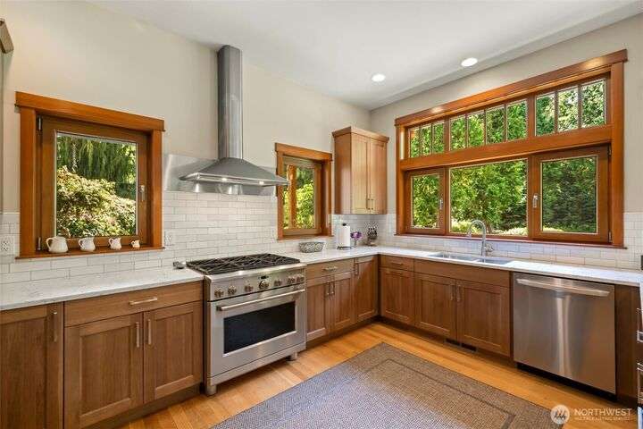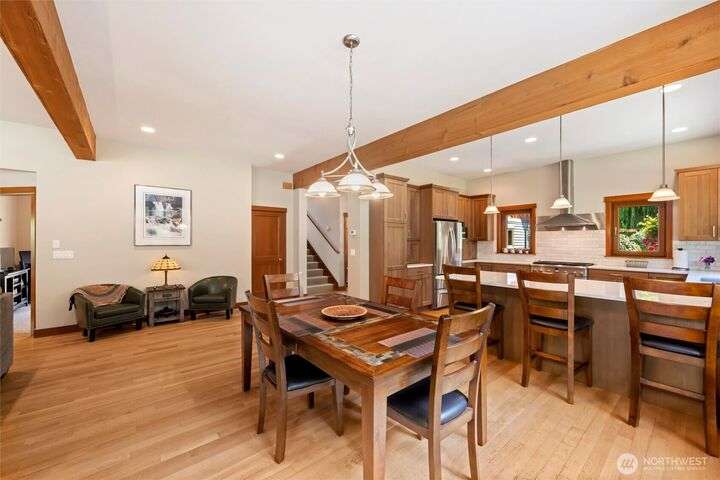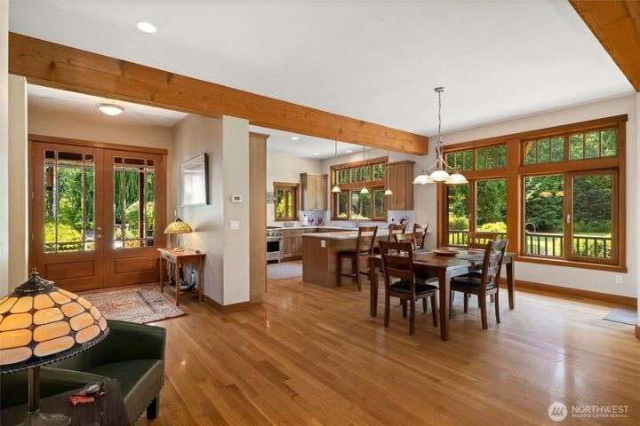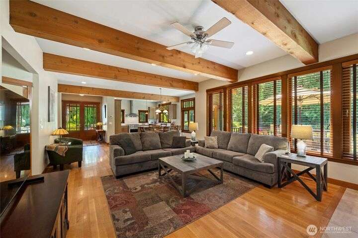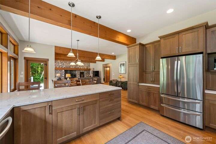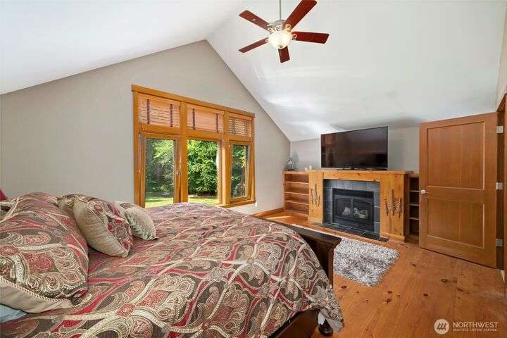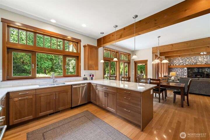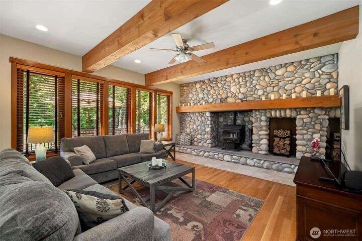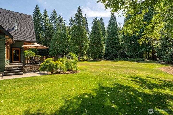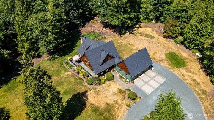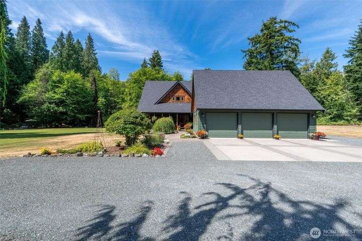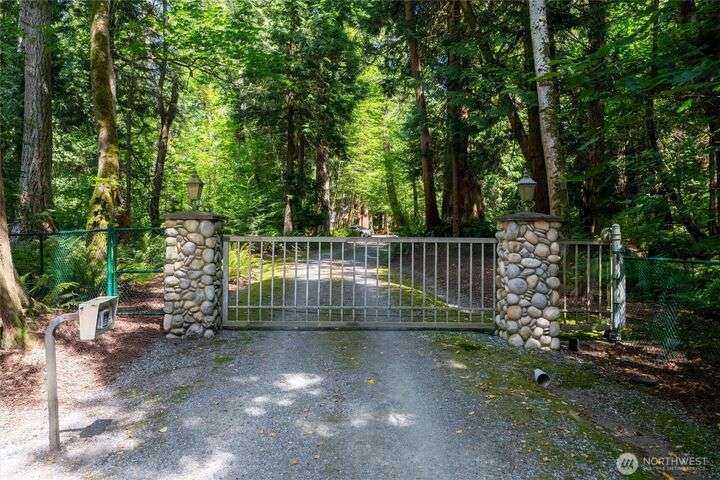 Beautifully crafted home set on 5 private, park-like acres with a gated entrance. This cedar-sided 4BD/3BA residence has been meticulously maintained and features a fully renovated kitchen with custom cabinetry, stainless appliances, and a large eating bar that flows into the dining and living rooms with river rock wood stove and white oak floors. Enjoy a den, office, and a stunning primary suite with fireplace, slate bath, walk-in shower and closet. New roof in 2024 and fresh exterior paint. Spacious 3-car garage with tons of attic storage, aggregate patio, and fenced beautifully landscaped acreage make this home a wonderful retreat and perfect for entertaining.