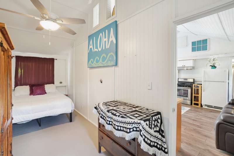 The location is ideal, with easy access to beaches, a bike/walking path, a health food store, restaurants, grocery stores, and coffee shops. The backyard features a coconut palm, offering the opportunity to harvest fresh coconut water, while the cottage's private fenced yard includes a beautiful plumeria tree, perfect for relaxation.