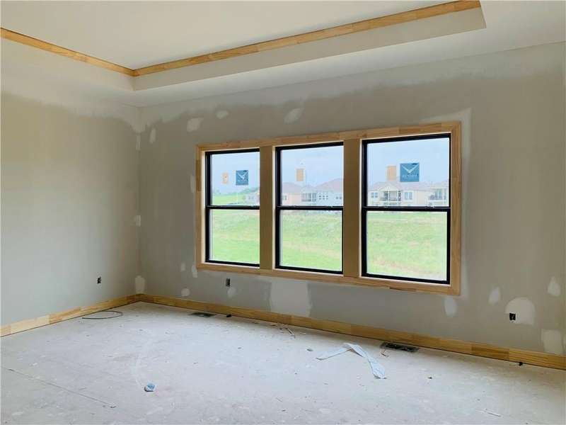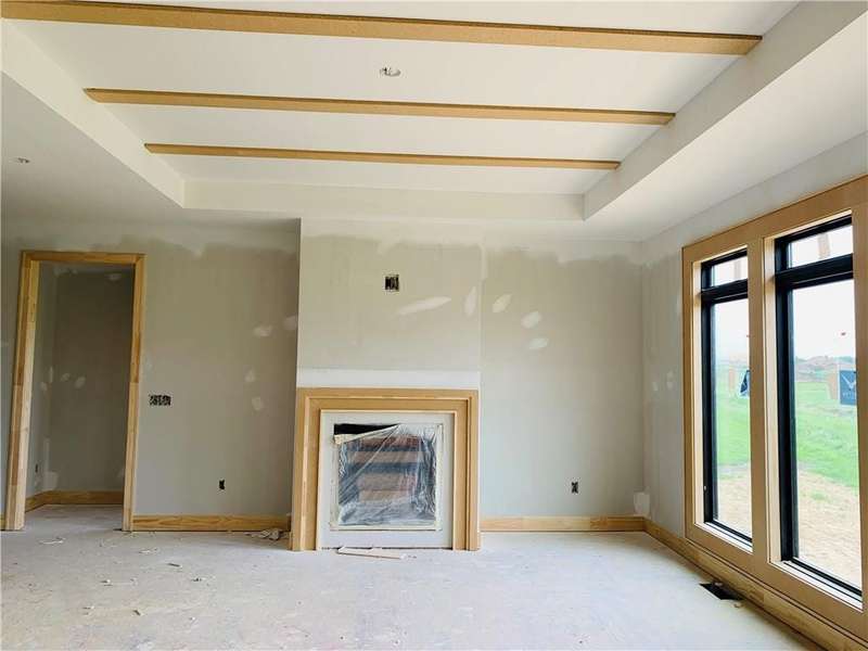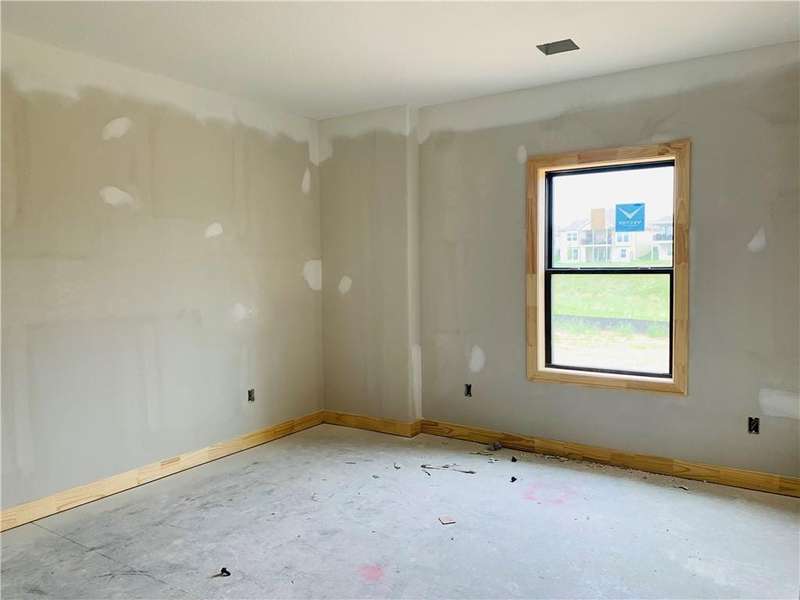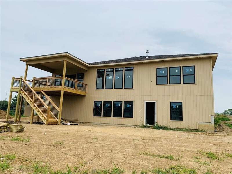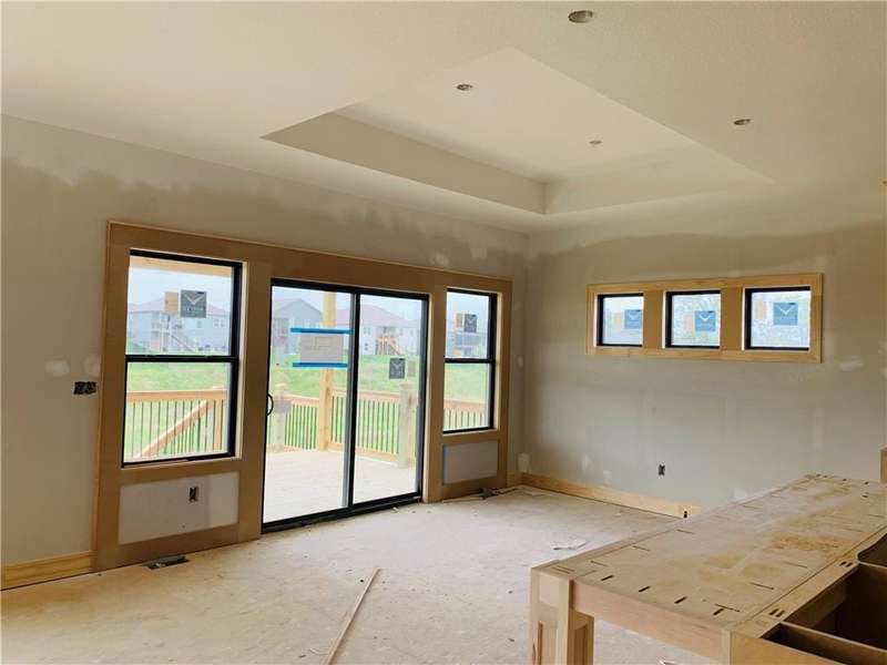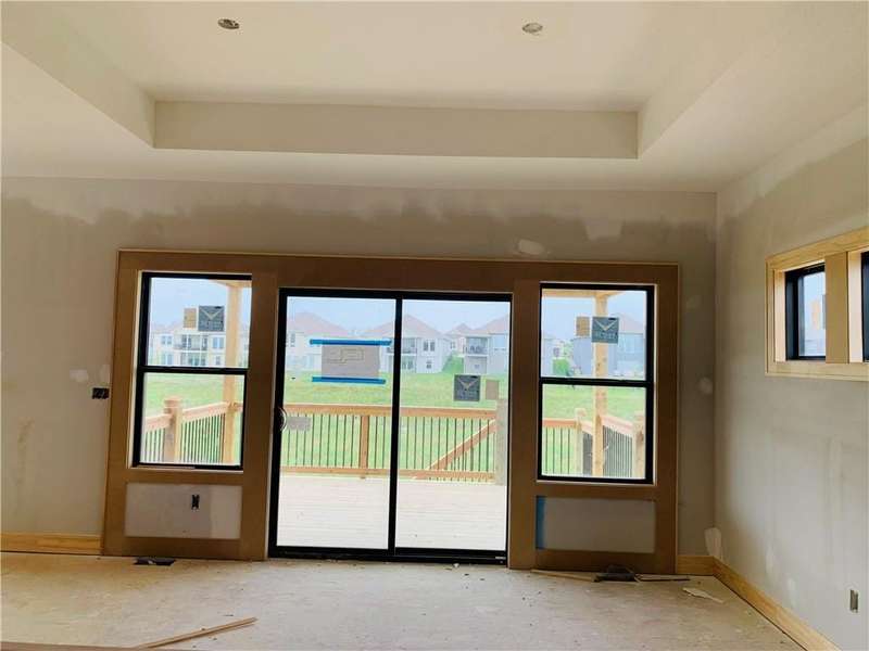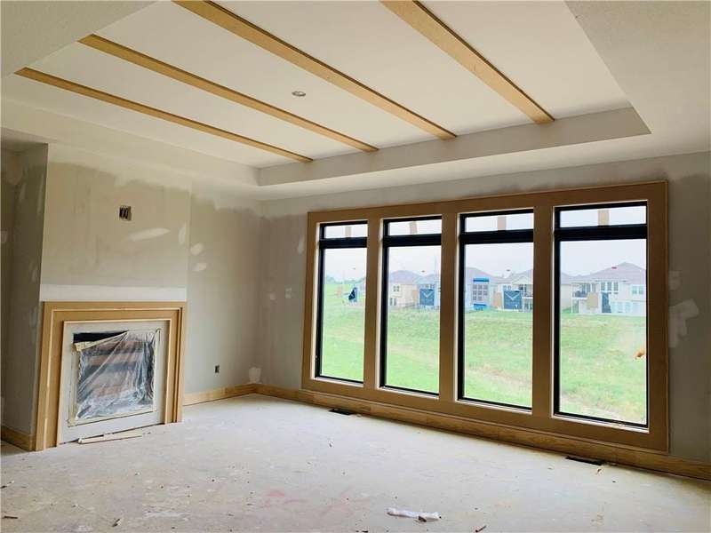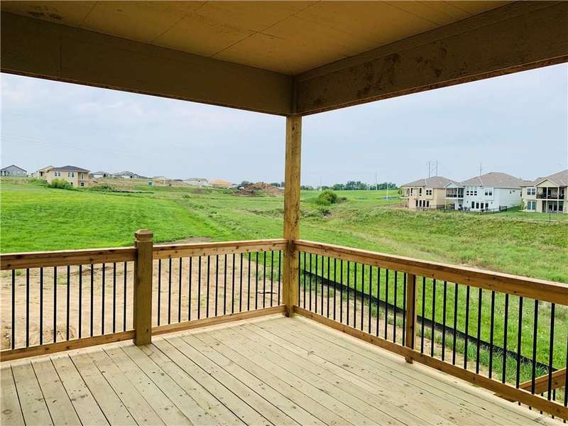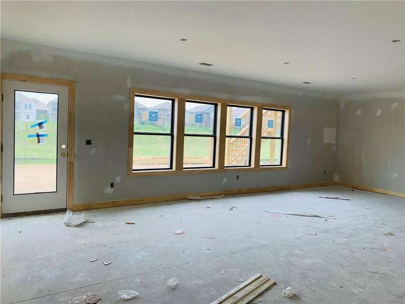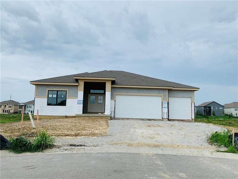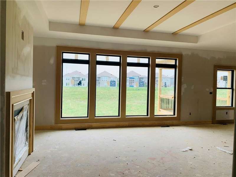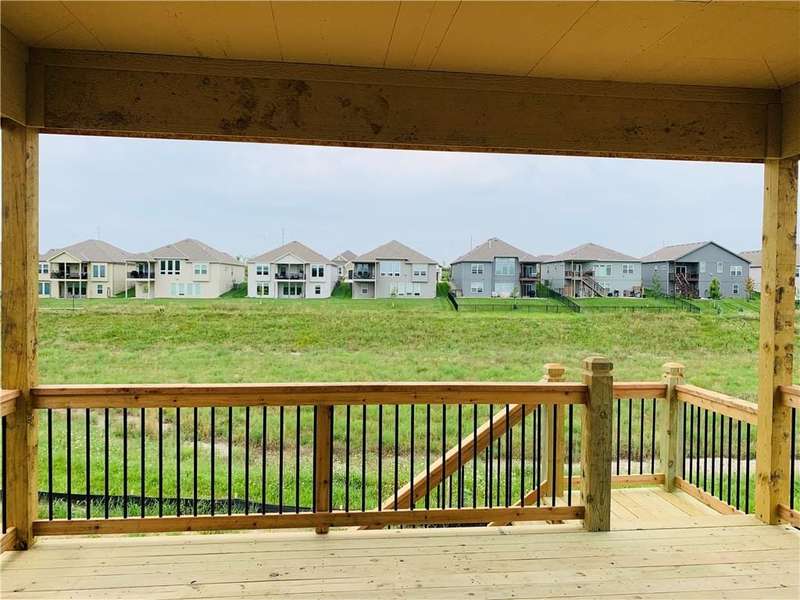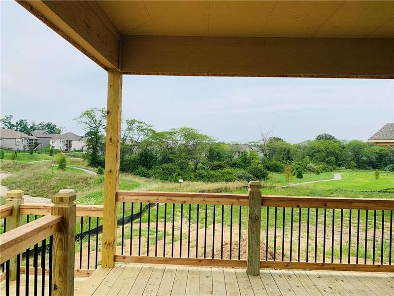 The AshtonCraftsman style by Hearthside Homesis a thoughtfully designed reverse 1.5-story nestled on a walkout cul-de-sac lot within Cadence, a premier Hunt Midwest community. Scheduled for completion on October 2, this home offers over 3,100 square feet of elevated living with four bedrooms, three full baths, and a layout tailored for modern lifestyles.The striking exterior features a curated blend of stucco, Polar Edge stone, and bold Dorian Gray accents, creating timeless curb appeal. Inside, the open-concept main level is anchored by vaulted ceilings with white oak box beams, wide-plank hardwood flooring, and a statement black tile fireplace. The designer kitchen impresses with Calacatta Ultra quartz countertops, built-in Frigidaire appliances, a sleek stainless steel hood, under-cabinet lighting, and a black Silgranit sinkan ideal balance of form and function. The main-floor primary suite offers a private retreat with a freestanding soaking tub, walkin tiled shower, quartz-topped vanities, and direct access to the laundry room. A private office is enclosed with glass barn doors and outfitted with custom cabinetry and floating shelves, perfect for remote work or study. The finished lower level includes a spacious rec room with luxury vinyl plank flooring, a wet bar with designer tile backsplash, two additional bedrooms with walk-in closets, and a full bath. Enjoy seamless indoor-outdoor living with a covered 16x12 deck and a generous 336 sq ft patio below. Cadence offers wonderful amenities including a community swimming pool, scenic walking trails, and walkability to Platte Purchase Park. Located within the North Kansas City School District and the boundaries of highly rated Staley High School, this home blends upscale finishes, smart functionality, and an exceptional lifestyle in one beautifully curated package. Photos updated 8-16 & 28-2025
