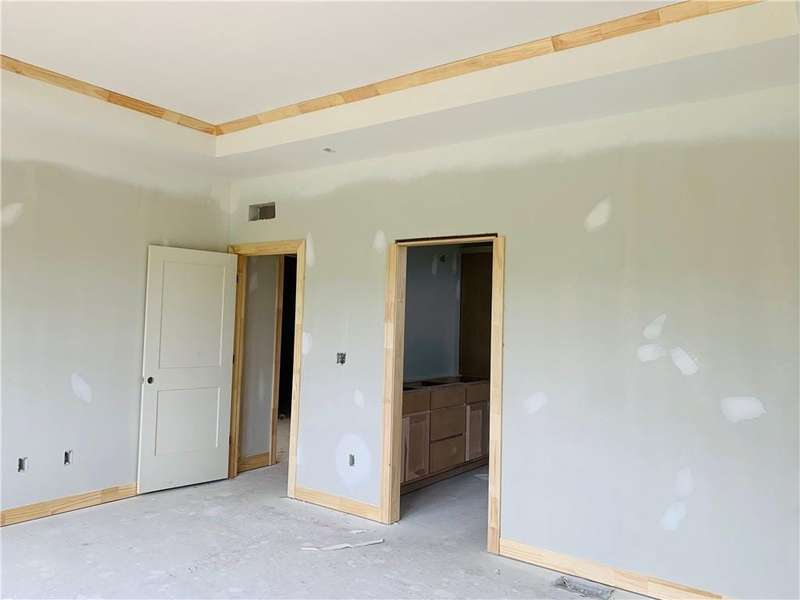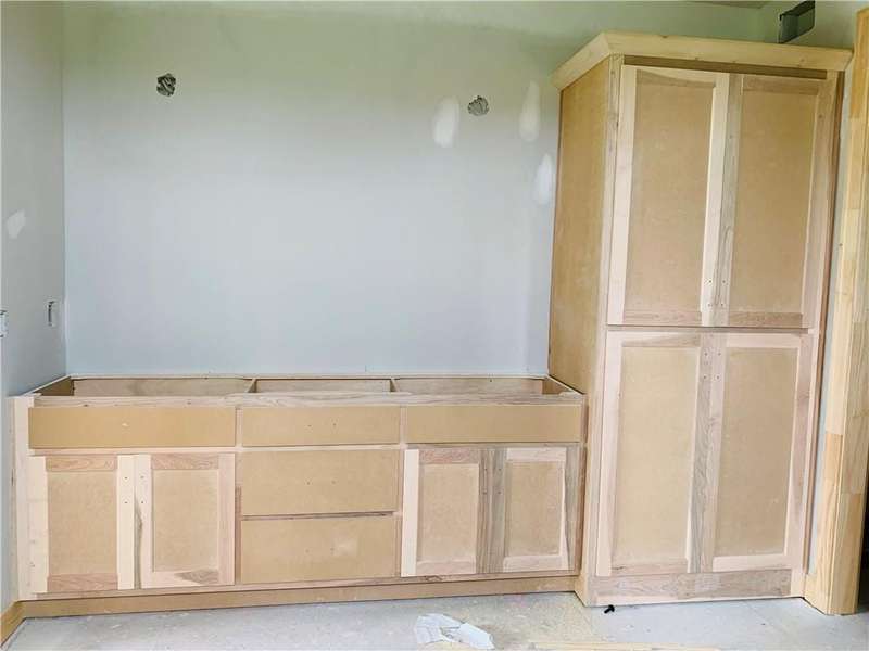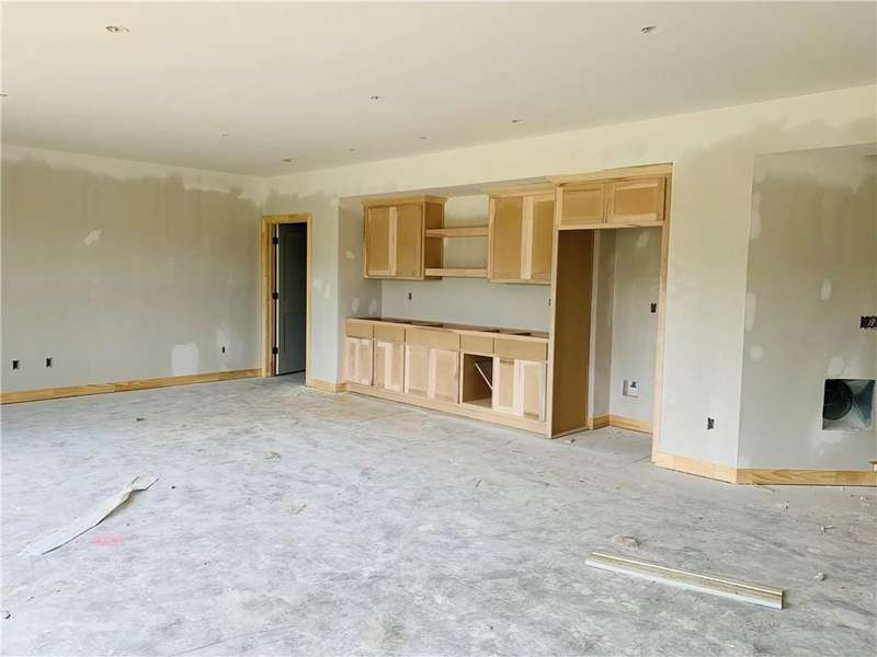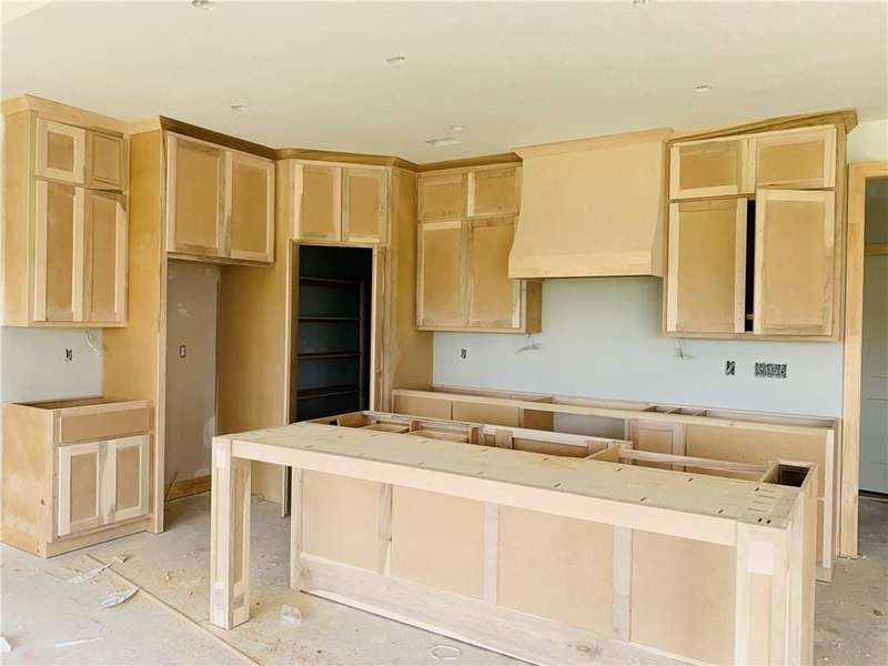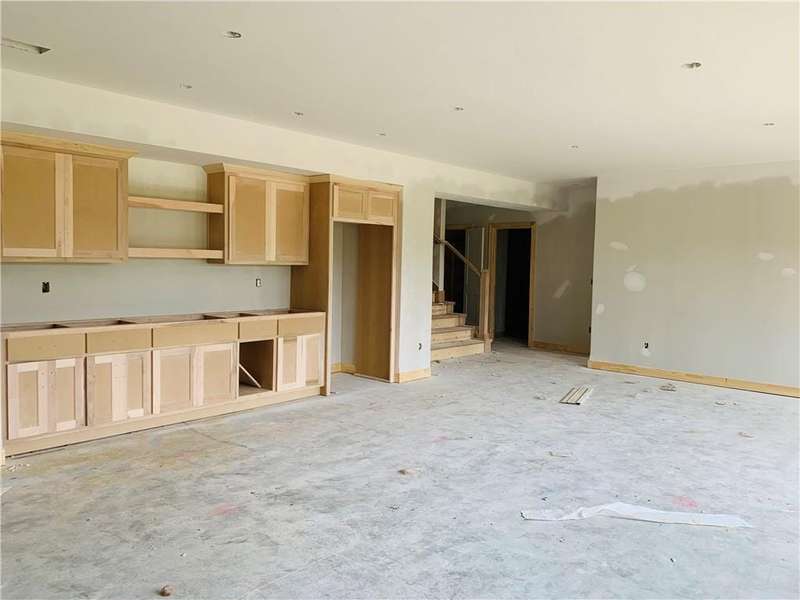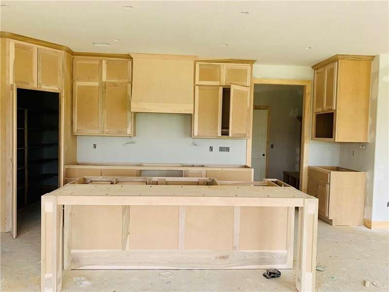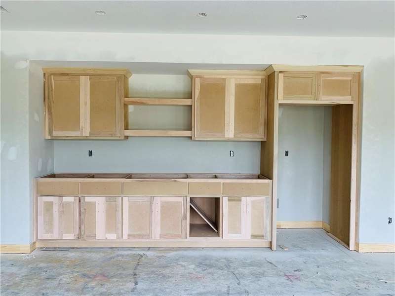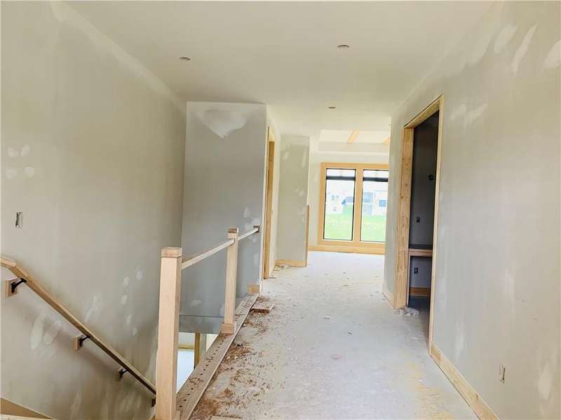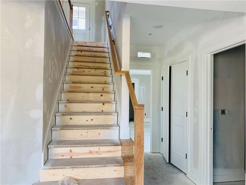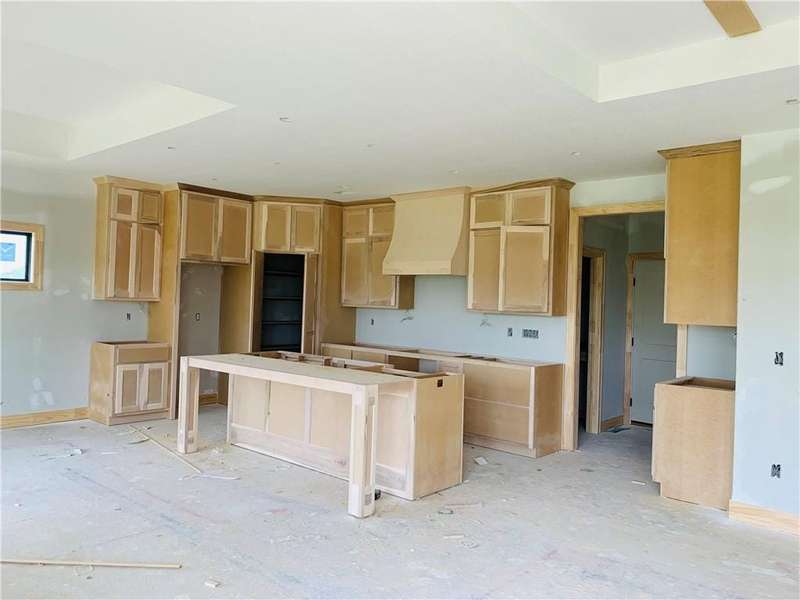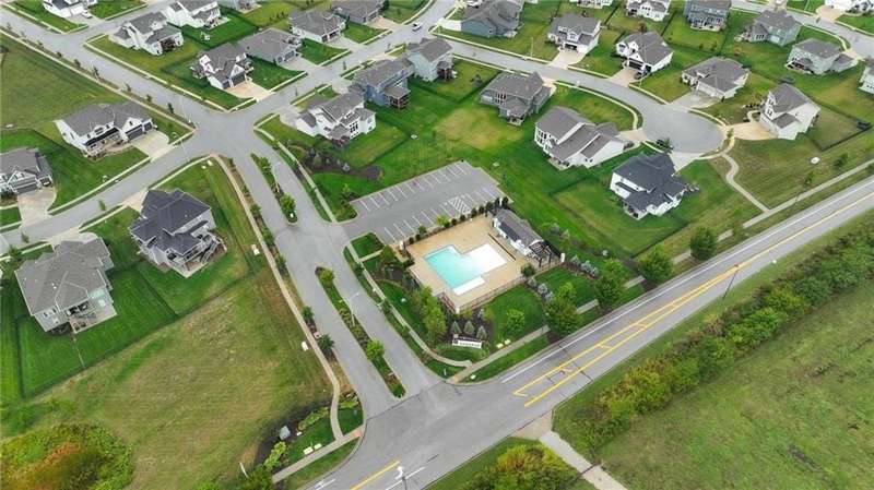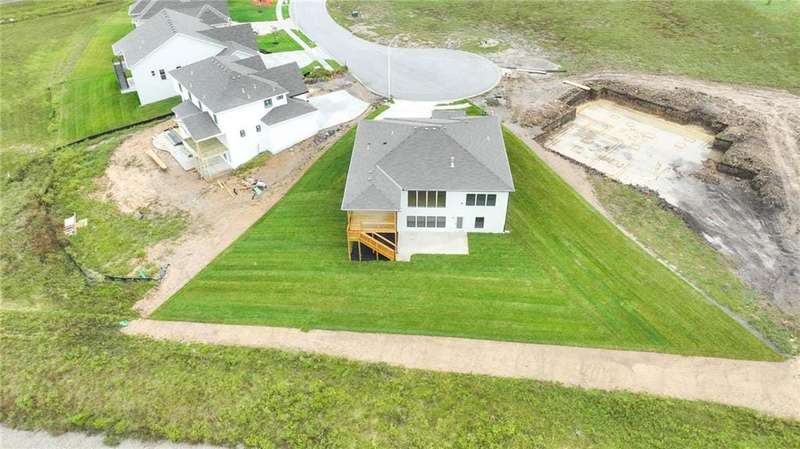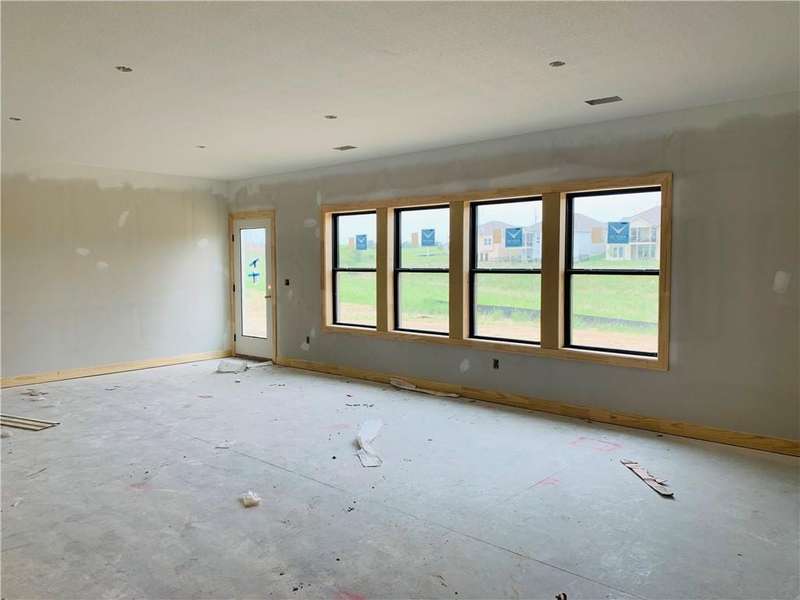 The AshtonCraftsman style by Hearthside Homesis a thoughtfully designed reverse 1.5-story nestled on a walkout cul-de-sac lot within Cadence, a premier Hunt Midwest community. Scheduled for completion on October 2, this home offers over 3,100 square feet of elevated living with four bedrooms, three full baths, and a layout tailored for modern lifestyles.The striking exterior features a curated blend of stucco, Polar Edge stone, and bold Dorian Gray accents, creating timeless curb appeal. Inside, the open-concept main level is anchored by vaulted ceilings with white oak box beams, wide-plank hardwood flooring, and a statement black tile fireplace. The designer kitchen impresses with Calacatta Ultra quartz countertops, built-in Frigidaire appliances, a sleek stainless steel hood, under-cabinet lighting, and a black Silgranit sinkan ideal balance of form and function. The main-floor primary suite offers a private retreat with a freestanding soaking tub, walkin tiled shower, quartz-topped vanities, and direct access to the laundry room. A private office is enclosed with glass barn doors and outfitted with custom cabinetry and floating shelves, perfect for remote work or study. The finished lower level includes a spacious rec room with luxury vinyl plank flooring, a wet bar with designer tile backsplash, two additional bedrooms with walk-in closets, and a full bath. Enjoy seamless indoor-outdoor living with a covered 16x12 deck and a generous 336 sq ft patio below. Cadence offers wonderful amenities including a community swimming pool, scenic walking trails, and walkability to Platte Purchase Park. Located within the North Kansas City School District and the boundaries of highly rated Staley High School, this home blends upscale finishes, smart functionality, and an exceptional lifestyle in one beautifully curated package. Photos updated 8-16 & 28-2025