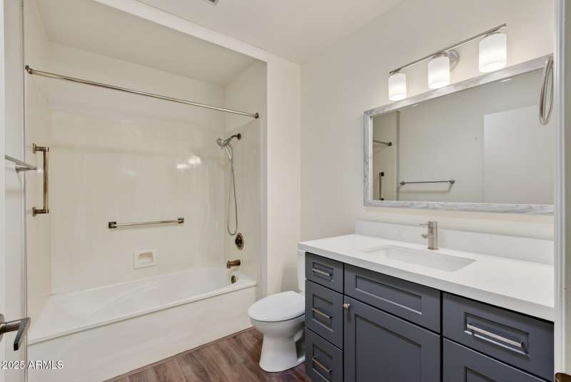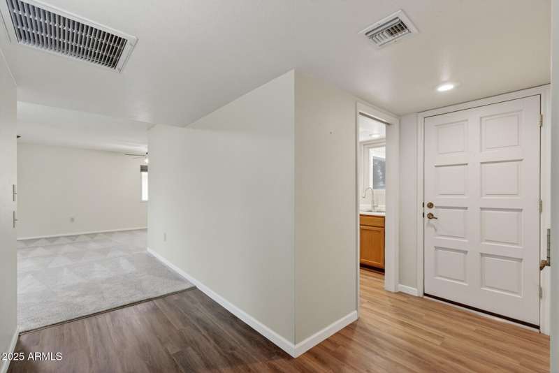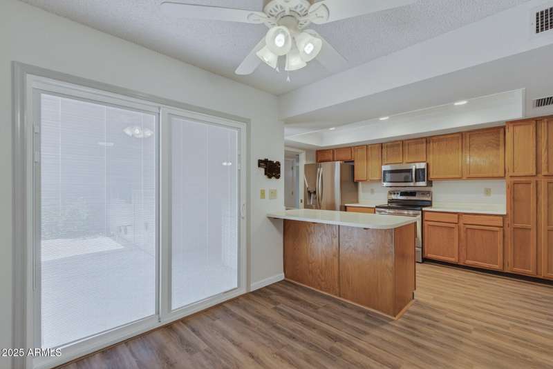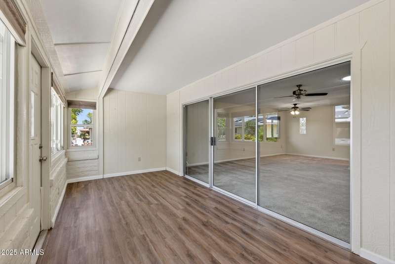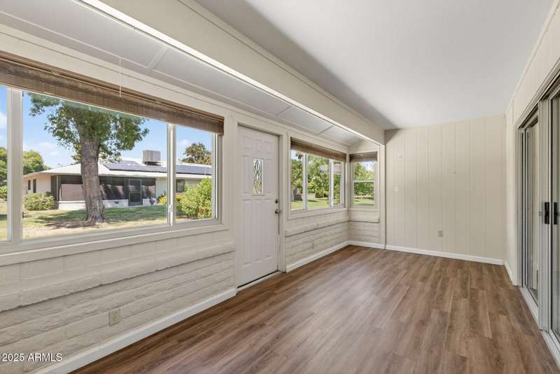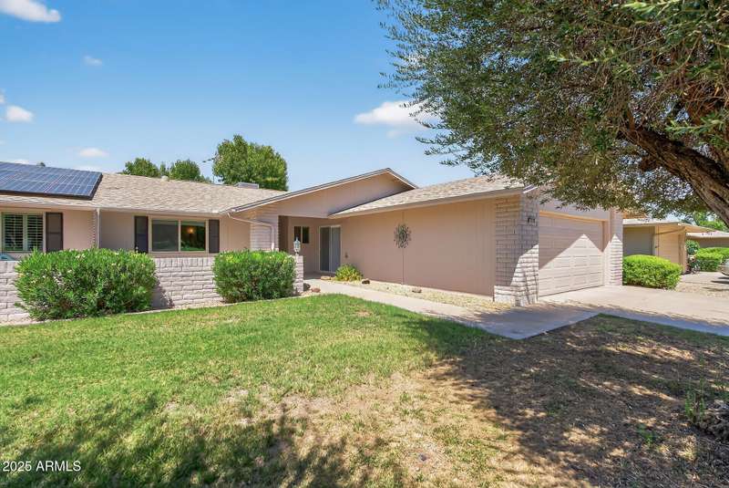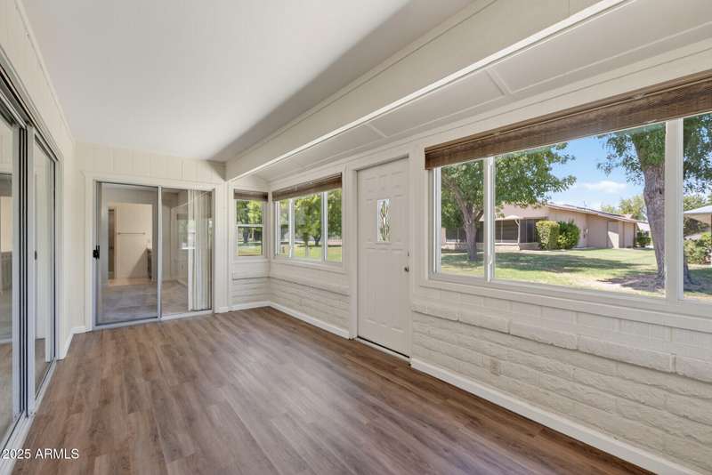 Almost like living on the golf course with Lush Grass front & backyards! This Gemini Twin is super clean & well maintained. New 50gal water heater in 2025. Luxury Vinyl plank installed in the kitchen and traffic areas in 2020. Roof replaced in 2017. New comfort height bathroom vanities with quartz counter tops, new sink, faucet features, lights and mirrors installed in both bathrooms. Windows, slider, garage door and garage door opener were all replaced in the past few years. Bali honeycombed shades throughout that open from the bottom and the top. Solar tubes provide natural light. Primary bedroom is spacious with an ensuite bath has a walk-in shower and HUGE walk-in closet. Fully enclosed patio/AZ room with dual paned windows. BIG utiltiy room with Whirlpool front load