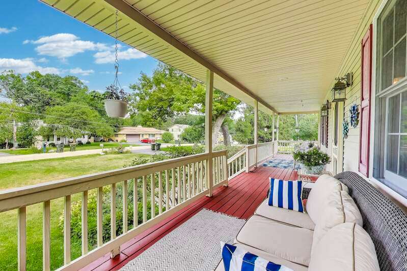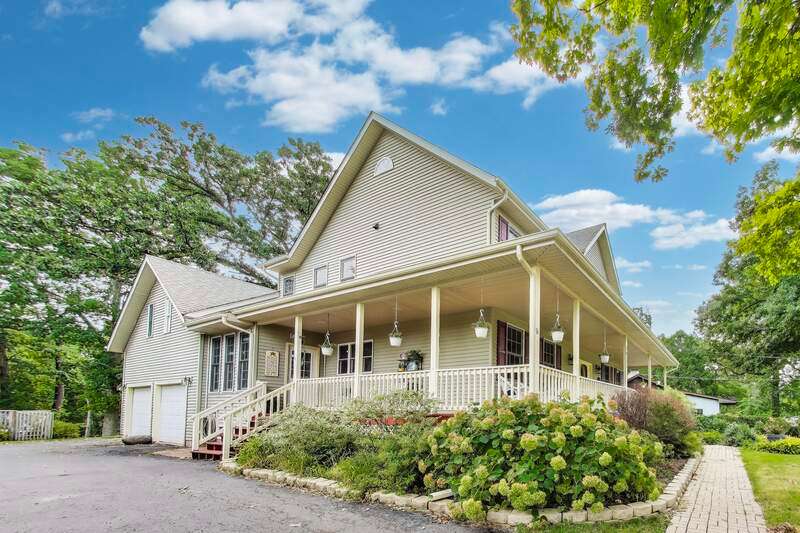 Absolutely stunning wrap-around porch. Tucked away in serene Wooded Acres, this unincorporated Ingleside home is your new nature haven! With a welcoming wrap-around front porch set on a quiet cul-de-sac street, this 5 bed, 2.5-bathroom home-built and cared for by its original owner-has it all. The first floor features a spacious layout with a sunny eat-in kitchen updated with granite countertops and stainless-steel range, opening to the deck and backyard through a newly installed patio door. Separate dining and living rooms, plus a 5th bedroom above the 2-car garage, add versatility. A full-sized basement is ready for your finishing touches. Upstairs, the large primary suite offers a walk-in closet, laundry room, new carpeting, and four additional bedrooms. Overlooking a private, mature tree-lined yard and set in a serene Ingleside neighborhood surrounded by Lake County Forest Preserve, with neighborhood access to walking paths and bike trails. Enjoy the benefits of unincorporated living, with more space and privacy while still being close to everything. Conveniently located near the Ingleside Metra station, this home makes commuting a breeze. Just minutes from local Fox Lake dining, marinas, and shopping, as well as all the recreation of the Chain O'Lakes-boating, fishing, and year-round outdoor activities. This home blends comfort, craftsmanship, and natural beauty-perfect for those seeking both serenity and accessibility.
