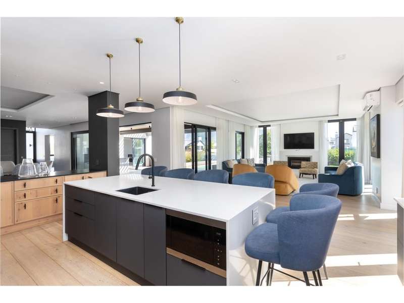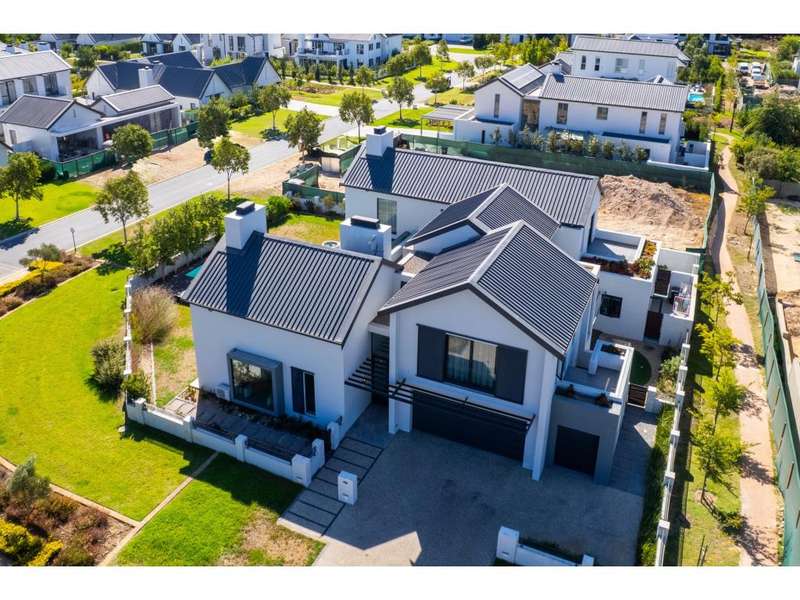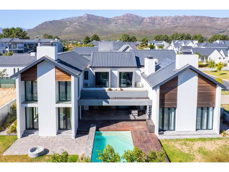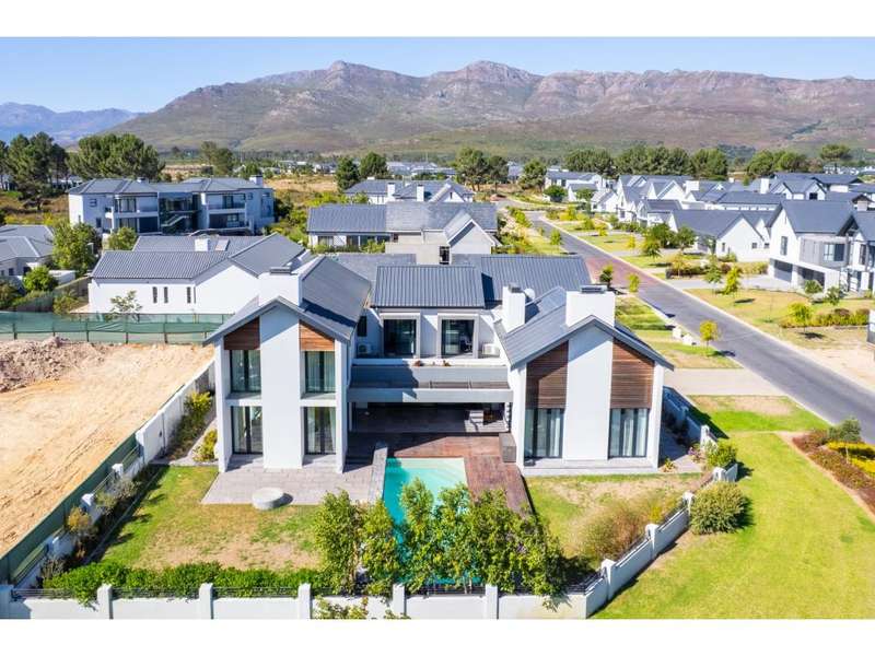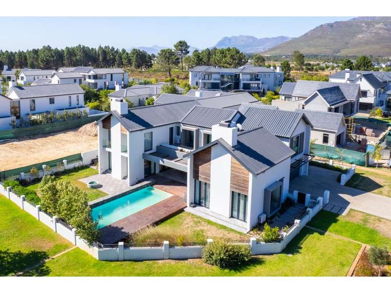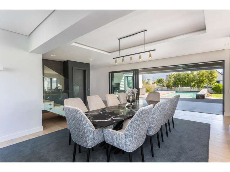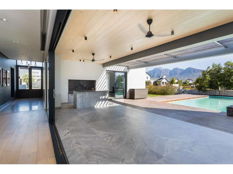 Exclusive Sole Mandate! Delivering a next-level standard in refined living, this home offers thoughtfully designed spaces in Val de Vie. What can only be described as ultra-luxe with breathtaking mountain views, and a design dialogue that captures every need and desire. Features: - Double glazed doors and windows - Oggie wooden flooring combined with Imported tiles and polished concrete - 5 Spacious en-suite bedrooms Family room - Open plan lounge, dining room and kitchen - Covered patio with built in braai - 2 wood fire combustion fireplaces - Resort size pool - Domestic quarters/outside office - 3 garages - putting green Neutral tones dominate the interior spaces for a striking, sleek aesthetic, with warmth achieved using natural materials like wood, stone, and granite. Chic and sophisticated, this home embraces structural innovation in a way that is both romantic and progressive.