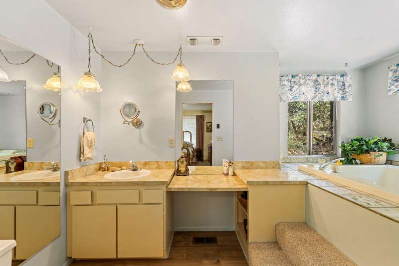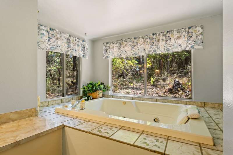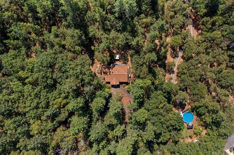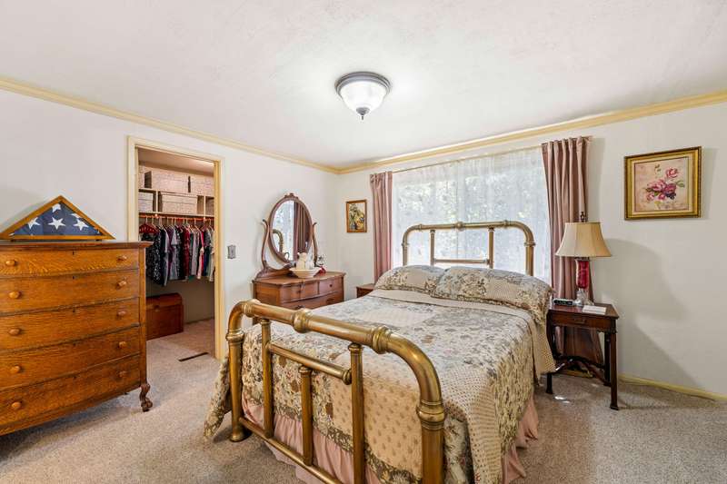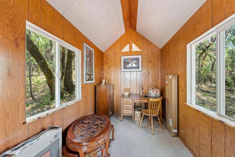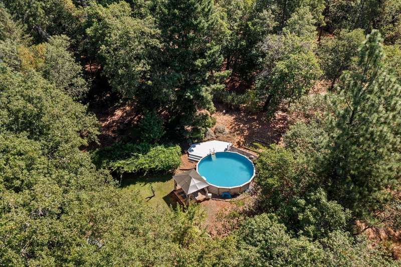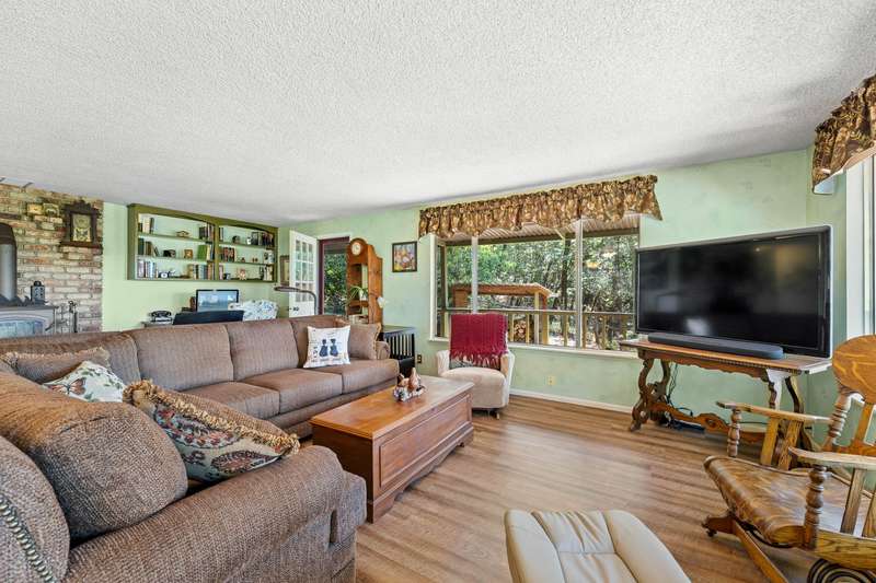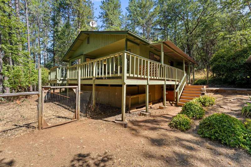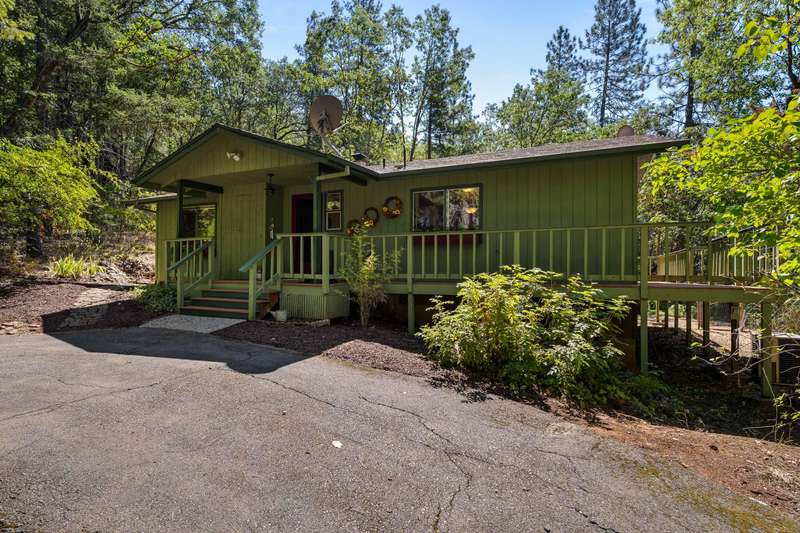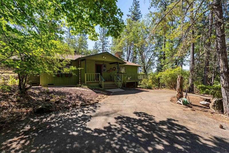 Enjoy privacy, peace and panoramic views from this super charming 2 bed, 2 bath Craftsman on 5+ private acres! This storybook home features a wraparound composite de k with breathtaking views of the surrounding landscape—perfect for relaxing or entertaining. Inside, you'll find updated LVP floors, cozy living room with woodstove and picturesque windows, nice sized kitchen that is open to the living space and primary bedroom with large soaking tub and walk-in closet. Outside is a true gardener's paradise with fruit trees, established garden, and a whimsical secret garden featuring an above-ground pool with brand new deck for summer fun. The property also includes a large RV garage, a separate workshop, and an adorable detached outbuilding ideal for an art studio, home office, or even guest space with a little finishing. Great well per well log! Peaceful, private, and packed with charm—this is a rare opportunity just minutes from town!