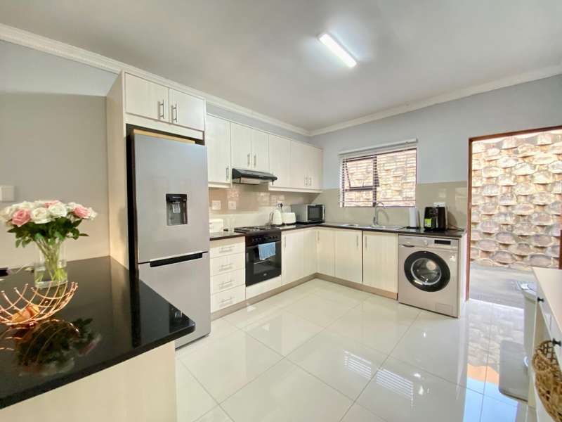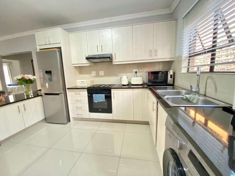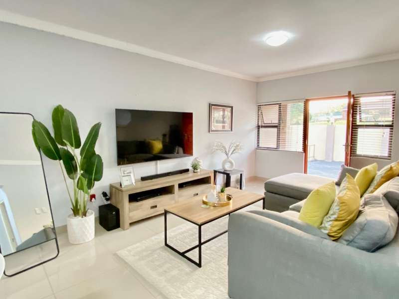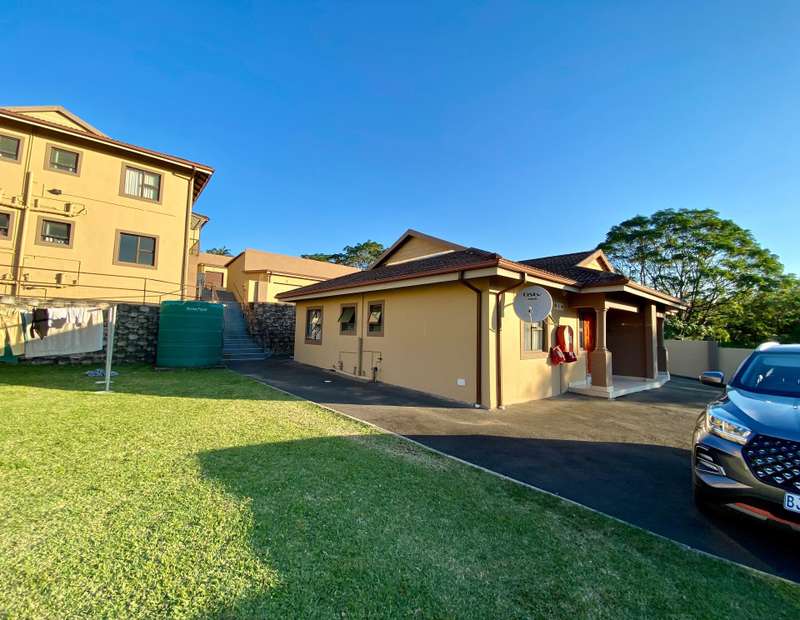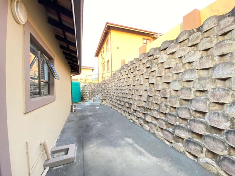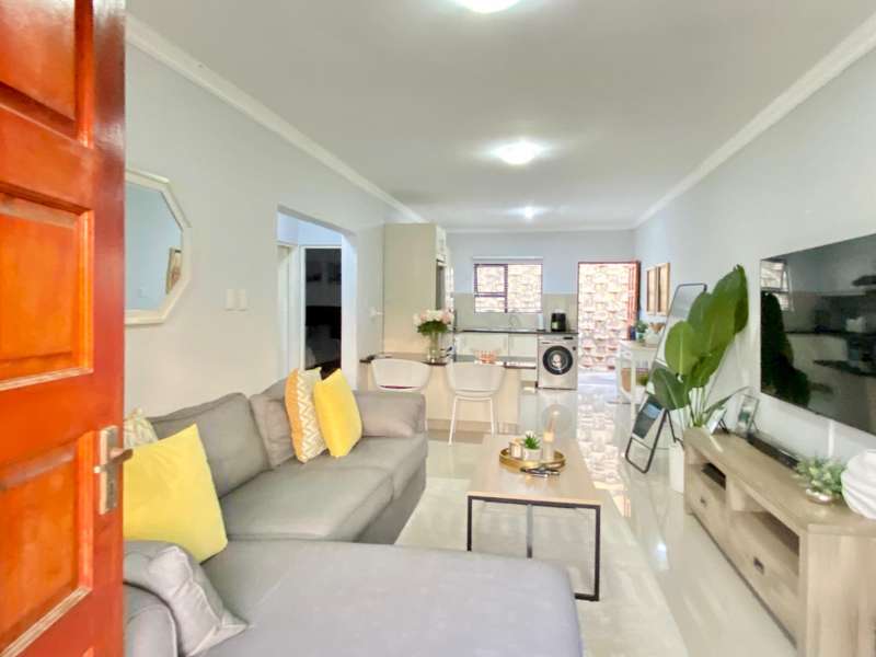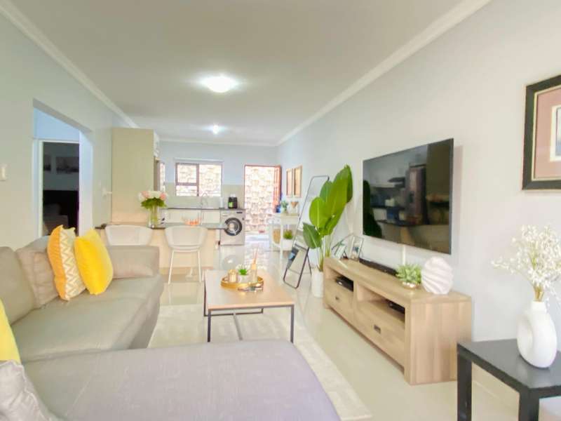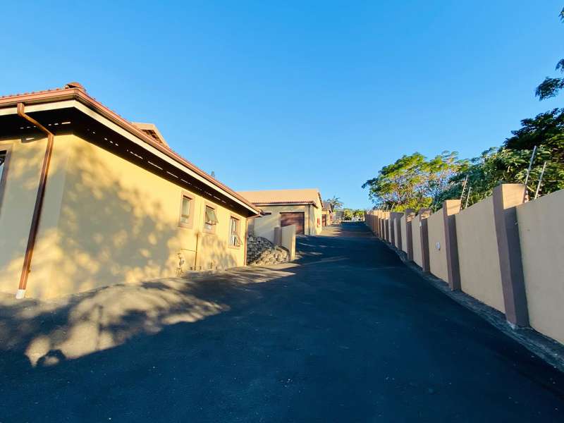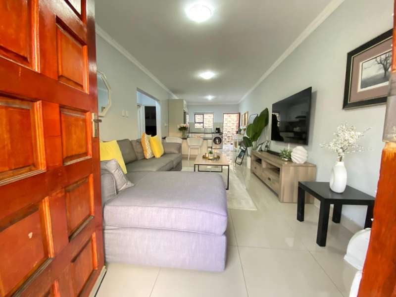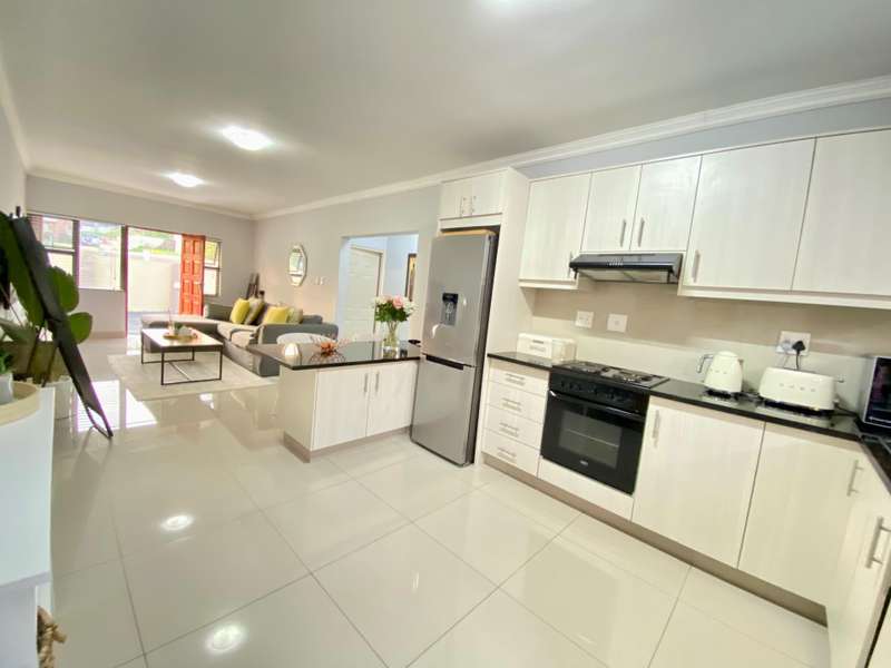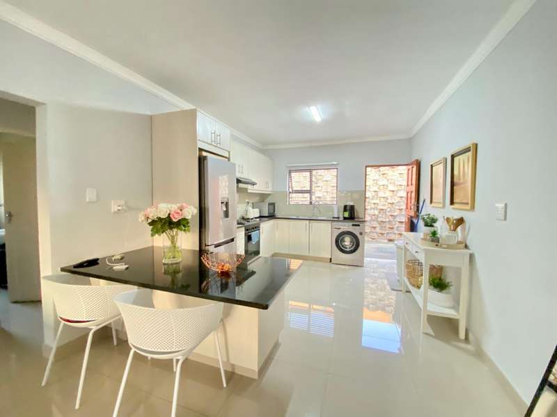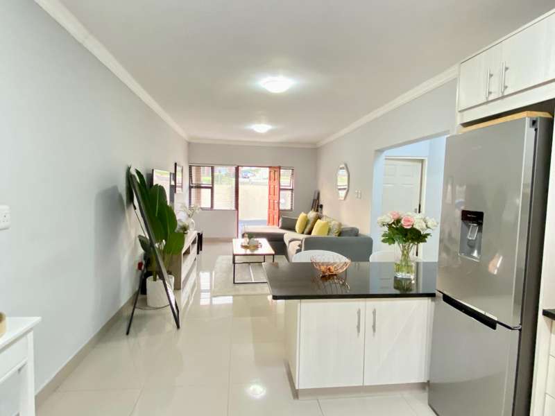 Spacious Pet Friendly Secure Stepless Townhouse With A Garage. Perfect starter home or empty nesters! Prime postion, central Waterfall. Nestled in a small, secure complex, this immaculately maintained simplex offers a comfortable living experience with 2 bedrooms and 2 bathrooms. The easy flow between the lounge, dining room, kitchen and front patio provides great all year-round entertainment. Both the lounge and the dining room are generously proportioned and the kitchen boasts granite tops and a serving hatch to the dining room. All two bedrooms are spacious, featuring ceramic tiles and built-in cupboards. The family bathroom offers a bath, toilet and basin and the main en-suite bathroom includes a shower, basin, and toilet. Perfect investment opportunity as these units get snapped up so quickly for rental due to their convenience. Walk to the place of worship ,the doctors rooms, schools nearby as well. This is convenience at its best.Two minutes to Primary School, Five minutes to N2 and Seadoone Mall. The complex is completely fenced for your peace of mind. Give me a call now before its sold.