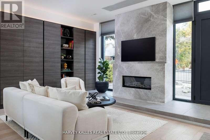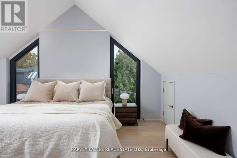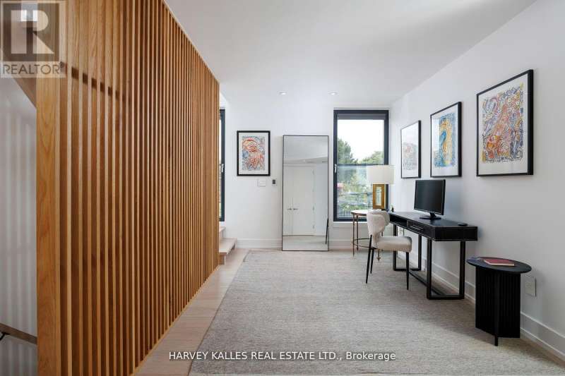 A masterfully reimagined residence that captures the essence of contemporary luxury. Designed for the discerning professional family, this home balances refined style with livability - a rare find in the one of the city's most coveted east-end enclaves. This exceptional 3+1 bedroom, 5 bath, custom home, blends architectural detail, sophisticated interiors and forward thinking engineering with an open-concept main level, 10 foot ceilings and almost 3000 square feet of living area. The home includes wide plank Maple hardwood floors, custom millwork and many upgrades that set a tone of quiet and contemporary luxury. Passive Home rated floor to ceiling windows and fully electric Hunter Douglas blinds accentuate sun-filled rooms. The living and dining areas are ideal for elegant entertaining, anchored by a Scavolini kitchen with an inviting quartz island that truly inspires culinary kings and queens - complete with ultra high end professional-grade appliances. Second level, private quarters offer a sanctuary for modern family life. The staircase, lined with a slatted white oak floor to ceiling feature wall winds into the open concept den and 2 abundantly appointed bedrooms with artful detailing and two individual full baths and laundry room. Rising to the 3rd floor's westward view of the city, the primary suite features 5 pcs ensuite, stone crafted soaker tub and Scavolini walk-in. Lower level integrates form and function with a stylish media lounge area, home office and exercise area. Employing a premium, performance based eco-friendly Passive Horne template, the home includes heated floors throughout. Roof top solar panels create an almost net zero energy efficient home. West facing urban backyard oasis for morning coffee and entertaining. Steps to Greenwood Park and Queen East shops, this is the ideal home for Up-sizers, Urban Professionals and the discerning buyer, who appreciates craftsmanship, community and modern convenience in an upscale, urban neighbourhood. (id:6370)