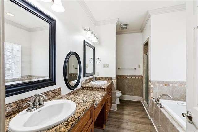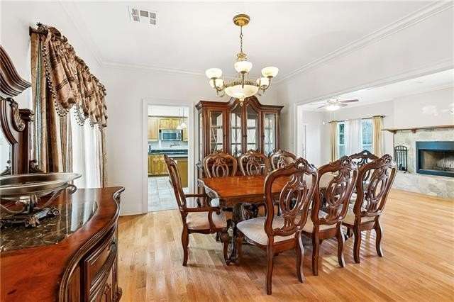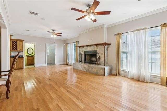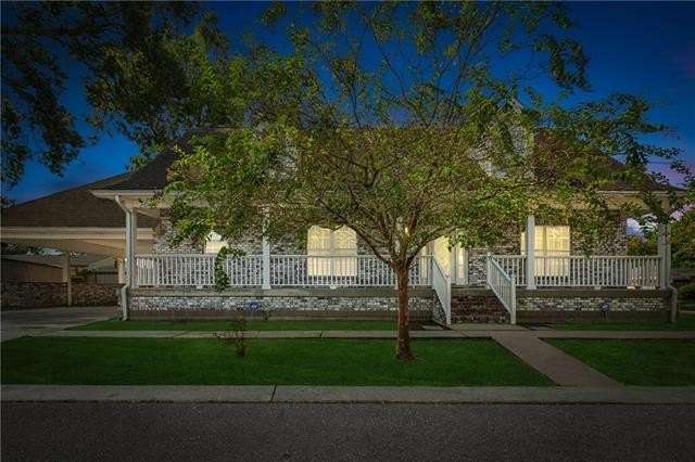 Welcome to this spacious and inviting two-story brick family home nestled on a desirable corner lot in Chalmette! This home boasts high ceilings, gorgeous hardwood floors throughout the main living areas, and a cozy gas fireplace in the expansive living room. The heart of the home is the well-appointed kitchen, featuring granite countertops, a central island with seating, stainless steel appliances (including refrigerator, dishwasher, microwave, and cooktop), ample cabinetry with a built-in wine rack, and tile flooring for easy maintenance. Adjacent is the formal dining room with elegant chandelier lighting and plenty of space for entertaining, flowing seamlessly into the open-concept living area. The primary suite is located on the 1st floor, with two generous walk-in closets, hardwood floors, and an en-suite full bath complete with double granite vanity, separate soaking tub, walk-in shower, and tile surrounds. A convenient half-bath/powder room next to the a laundry room. Upstairs, discover two oversized bedrooms with abundant closet space, hardwood floors, and ceiling fans, plus a versatile office space for remote work or a playroom. Outdoor highlights include a covered front porch, a well-manicured lawn with mature trees, and a side-entry carport providing covered parking for two vehicles. Located in a low-risk X flood zone (no mandatory flood insurance required) and qualifying for 100% USDA Rural Development Financing, this home offers peace of mind and accessible buying options.cAdditional features: Crown molding, ceiling fans throughout, no carpet, central HVAC and proximity to schools, parks, shopping, and dining. Don't miss this gem—schedule a showing today!