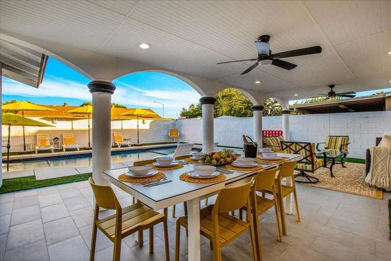 Vacation Rental. Minimum 30 day rental Ask about availability. Spectacular 5 BR/3 Bath home with pool and spa and massive private back yard. 2 car garage, plenty of parking, updated stainless steel kitchen and baths. Comes turnkey furnished and will be ready for your next vacation stay! One BR/bath has separate entrance and can function as a casita. Perfect for your extended family vacation or group gathering. This is a no smoking property. One small dog, less than 20 lbs considered. Rates starting at:: $9775/month. Ask about April rates and availability. Pet Fee, $450 Cleaning Fee, $188 Prop Fee, Sec Deposit Required. $100/day pool heating fee or pay total gas bill. Booked: June/July/August 2025.