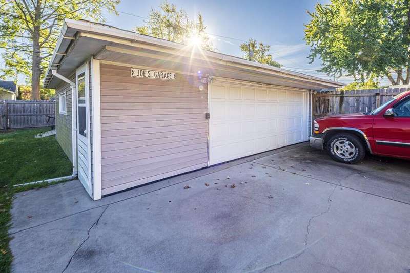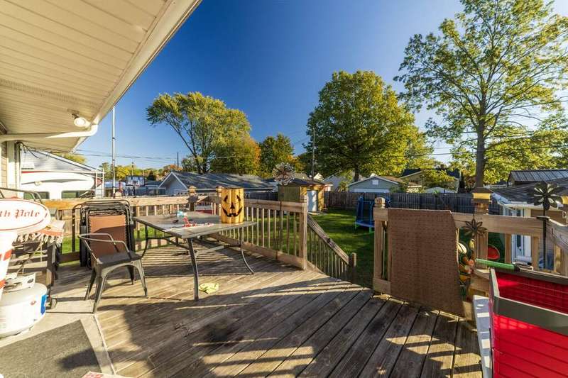 Welcome to this over 2,000 sq. ft. home offering plenty of space, updates, and potential to make it your own! The property features a new roof (2012), privacy fence with backyard gate (2019), front and back doors replaced (2019), and all windows updated for comfort and efficiency. You'll also appreciate the new gutters (2021) and a remodeled bathroom (2022). Seller reports there are hardwood floors under the carpet. Recent big-ticket upgrades include a Generac generator (2024) along with a new furnace and A/C (2024)--providing peace of mind for years to come. Enjoy the large, fully fenced backyard, perfect for pets or outdoor gatherings, plus a spacious detached garage with additional basement/storage space. LARGE driveway that features swing gate to fully enclose backyard. New garage door 2020. Please note: The two Yoder sheds in the backyard are not included in the sale. With 4 bedrooms, 2 full baths, and over 2,000 sq. ft. of living space, this home offers tons of potential and room to grow. Don't miss the chance to make this property your own! Griffith is a golf cart community! Pool table and both Yoder Sheds backyard do not stay.