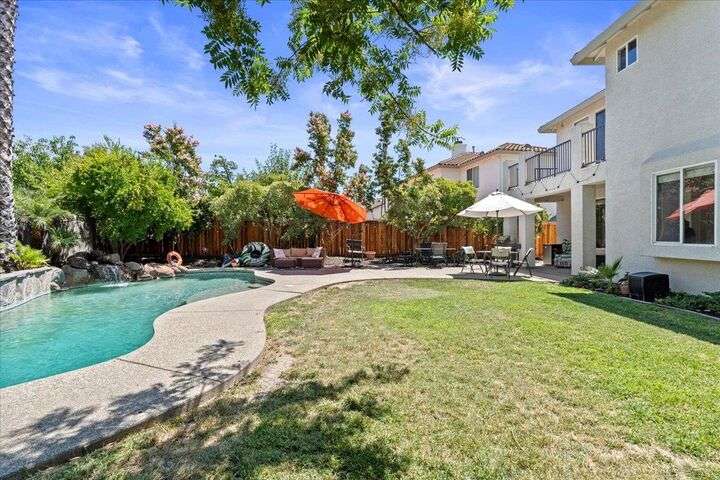Your summer oasis awaits! This spacious 5-bedroom, 4-bath home offers 3,622 sq ft of comfort and style in one of Natomas' most sought-after neighborhoods. The desirable layout includes a downstairs bedroom with attached full bath, perfect for guests or an in-law suite. The unique loft makes the perfect at home office, play room, media room, etc. The luxurious primary suite features a private balcony overlooking the backyard, a spa-like bath with large soaking tub, dual sinks, and a huge walk-in closet. Upstairs you will also find the rest of the bedrooms with Jack and Jill functionality as well as a balcony facing the neighborhood. The heart of the home is the expansive kitchen, complete with a large island, ample counter space, and seamless flow onto the two living spaces providing the perfect layout for entertaining or relaxing with family. Awaiting for you in the backyard is your own private paradise with a beautifully landscaped yard, sparkling pool with 2 waterfalls. Additional features include a 3-car garage and upstairs laundry room. As a Natomas Park resident, enjoy exclusive access to the clubhouse with lap pool, lagoon pool, gym, and moreall for a low HOA fee. Close to schools, shopping, dining, entertainment, & Sacramento International Airport. Don't miss the 3D tour