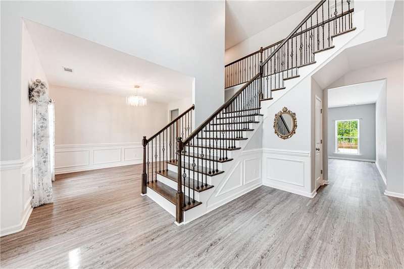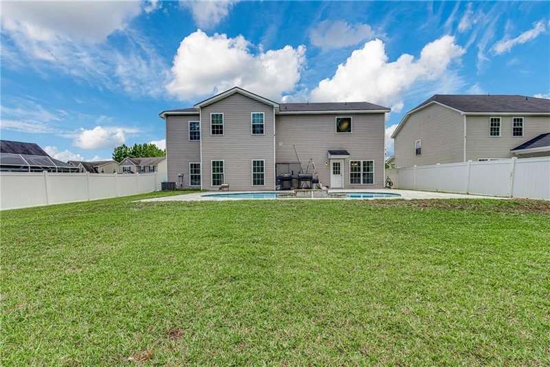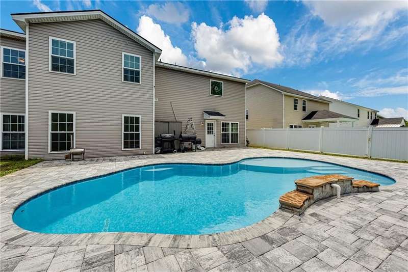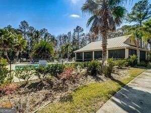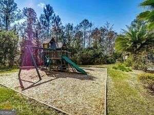 Come into this beautifully crafted 5-bedroom, 3-bathroom home and be greeted by a grand two-story foyer, elegant wood tread staircase with wrought iron spindles, and detailed wainscoting along the stairs and formal dining room-creating a warm, welcoming impression from the start. The main floor offers flexibility and function with a dedicated office, a full bathroom, and a guest bedroom-perfect for visitors or multi-generational living. At the heart of the home is a chef-inspired kitchen featuring an island, high-top breakfast bar, double ovens, an oversized walk-in pantry, and a sunny breakfast nook-perfect for entertaining or everyday living. Upstairs, youll find the HUGE primary suite, which includes either three separate closets or two closets and a bonus room that can serve as a nursery, private office, or dressing room. A hidden room-tucked away behind a bookshelf-adds a unique touch of character and function. The spa-like en-suite bath features dual vanities, a soaking tub, a large tiled shower, and a private water closet. Laundry is conveniently located upstairs as well with the other bedrooms. Come outside to your private backyard oasis with a beautiful cobblestone pool and tranquil fountain feature-ideal for relaxing or entertaining. Located within walking distance to Camden County High School, just 5.8 miles to Kings Bay Naval Base, and only 37.5 miles to FLETC-this home combines elegance, space, and unbeatable convenience! Settlers Hammock neighborhood does also have its own pool as well as basketball hoop, play ground, and sidewalks!