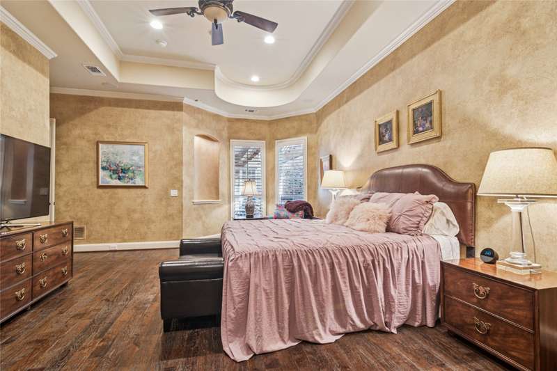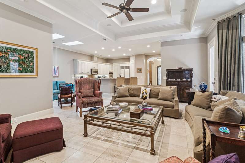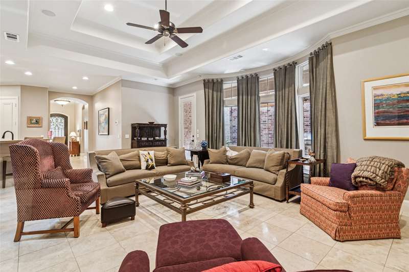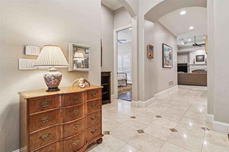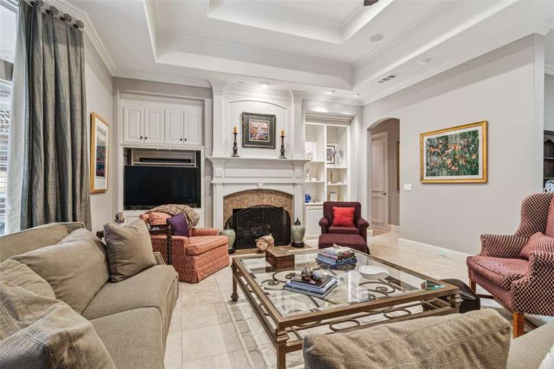 Lovely one story home on quiet cul de sac. Soaring entry, open floor plan with lots of natural light. Hardwood and stone floors, high ceilings and spacious rooms throughout. Beautiful kitchen features stainless steel appliances and granite and is open to large family room. Split floorplan with primary bedroom in rear of house. Large en suite bathroom has separate vanities, shower, tub and ample closet space. Private courtyard with built in grill. This home is part of the luxurious Lake Forest community. Amenities include the natural beauty of mature landscaping, walking trails, community pool, tennis courts, Bark Park dog park, Pickle Ball, a two lakes, friendly ducks, and gated and guarded entrances to this beautiful private community.