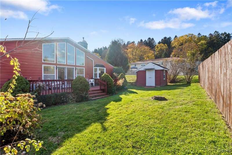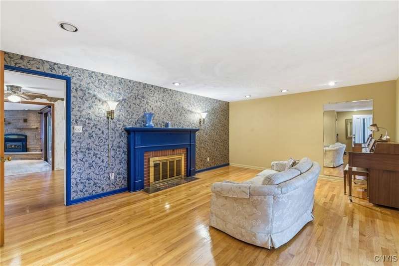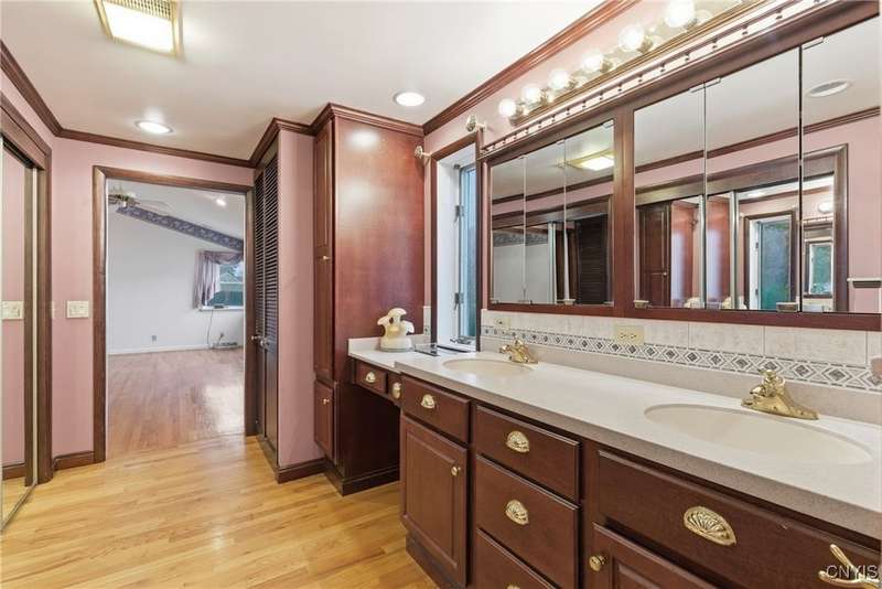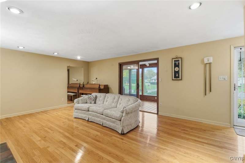 LOCATED ON W GENESEE RD, OFF PARSONS RD IN CAMILLUS, NOT WEST GENESEE ST****Spacious 2,622 sq ft Ranch with Potential for a 3rd Bedroom! This expansive 2,622 sq ft ranch home offers single-level living with room to grow, featuring 2 bedrooms plus a versatile family room that can easily convert to a 3rd bedroom. Perfectly positioned near all Camillus amenities and major highways for effortless commuting.The enormous great room showcases a dramatic cathedral ceiling, skylights flooding the space with natural light, a wet bar for entertaining, and atrium doors opening to a private deck?ideal for indoor-outdoor living.The adjacent family room boasts newer bamboo flooring, a cozy corner gas fireplace, and a full bathroom, making it a seamless conversion to a third bedroom, guest suite, or home office.Retreat to one of the largest primary suites you'll find, complete with a luxurious primary bath featuring both a tub and separate shower, double sinks, extensive closet space, and convenient in-suite laundry.The chef's kitchen impresses with rich Cherry cabinetry, ample counter space, stainless steel appliances, and a breakfast bar overlooking the banquet sized formal dining room where you can host memorable occassions!A formal living room with a second gas fireplace flows into the year-round Florida room, wrapped in windows, finished with terracotta tile flooring, and offering stairs to the lower level.The lower level provides abundant storage, a workshop area, Bilco doors for easy outdoor access (perfect for bringing in seasonal items), and a finished bonus room ready to serve as an extra bedroom, game room, or home gym.With its thoughtful layout, and prime Camillus location, this ranch is a rare find?move-in ready with endless possibilities.