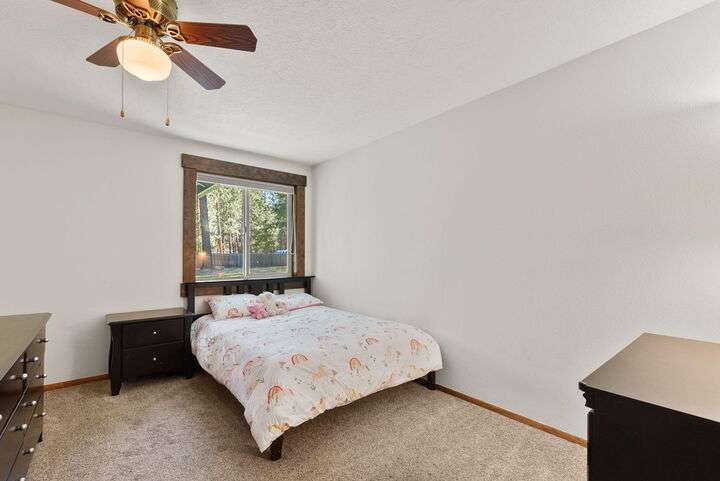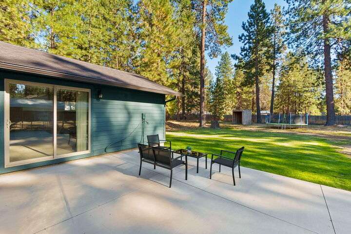 Welcome to The Pine Haven —a peaceful retreat on nearly an acre, tucked among towering pines in the coveted Caldera school district. This single-level home blends privacy with convenience, just 5 minutes from Brookswood Plaza + Elk Meadow Elementary. Inside, enjoy a fresh, light + bright feel with new paint, updated fixtures, and flexible living spaces—including a dedicated home office. The oversized primary suite offers bonus space + private patio access. Outside, savor your morning coffee on the covered front porch or unwind on the spacious back patio begging for a hot tub. With a wide lot layout, there's room for RV parking, toys, or a future shop—plus extra storage in the garage + shed. Quiet, tucked away living with easy access to the Old Mill + Downtown Bend, this property is the perfect home base for your Central Oregon lifestyle or a short-term rental opportunity.