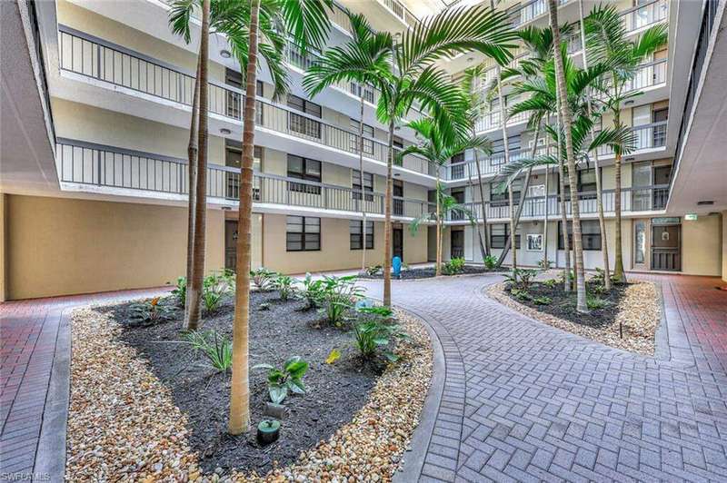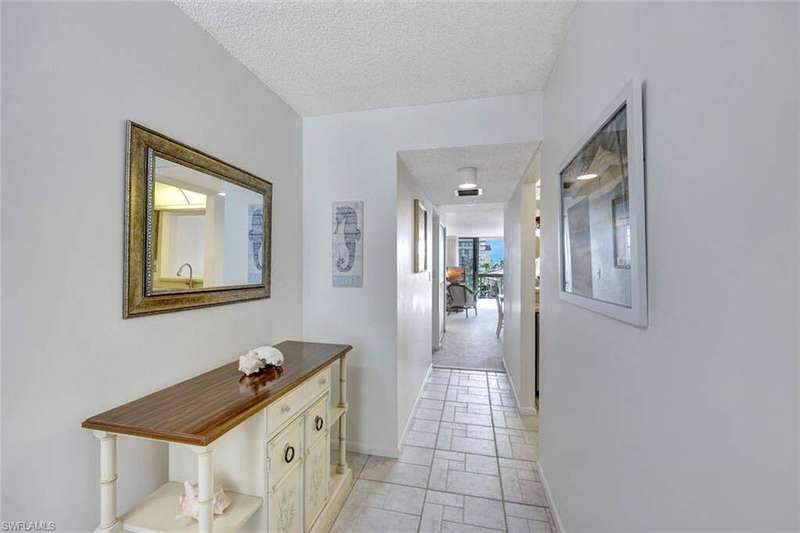 Discover the potential in this spacious 2-bedroom, 2-bath unit located on the third floor of South Seas East. The building features a charming open-air courtyard surrounded by lush tropical landscaping, creating a peaceful and welcoming entryway. Located within the desirable 24-hour guard-gated community of South Seas, residents enjoy access to a wealth of resort-style amenities including private beach access, a heated swimming pool, tennis and pickleball courts, shuffleboard, bocce, a chickee hut, community barbecue area, available dock leases, kayak storage, and even a car wash station. This light-filled residence offers and open floor plan, and a screened lanai accessible from both the living room and primary bedroom. Enjoy tranquil views of the tropical landscape, pool area, and bay waters-a perfect spot to unwind and take in the island atmosphere. While the kitchen and baths are ready for your personal updates, the layout offers a great foundation to create your ideal coastal retreat. The primary suite includes an en-suite bath and ample closet space and guest bedroom. New roof was added to the building in 2023. Whether you're seeking a renovation opportunity, investment property, or vacation getaway, this condo offers excellent value in a prime Marco Island location just minutes from shopping, dining, and the beach.