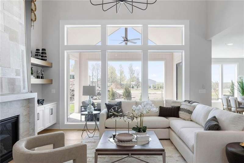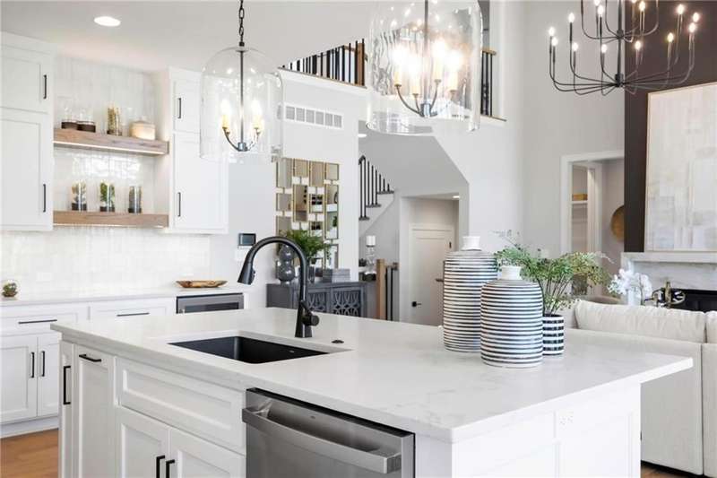 MODEL HOME- NOT FOR SALE AT THIS TIME. Situated on Lot 52, J.S. Robinson’s Cypress 1.5 floor plan offers a refined 1½-story layout centered around an impressive two-story great room, which is visible from the upper level. The open concept seamlessly integrates the great room, kitchen, dining area, flex room, and outdoor living space. The primary suite serves as a main-level retreat with a luxurious, spa-inspired bath. The upper level features three bedrooms: one with a private en-suite bathroom and two sharing a Jack and Jill bath, each equipped with walk-in closets. Additional living space is provided by a loft that includes a walk-in game closet. Entertaining is enhanced by the covered back patio. This efficient design balances functionality with comfortable and elegant living. Riverstone Valley is close to schools, highways, shops and restaurants! Models Open Daily, 11 am – 5pm, and Sunday, 12-5pm. Visit the sales office at 12411 W 183rd Terrace (this property), Overland Park.
