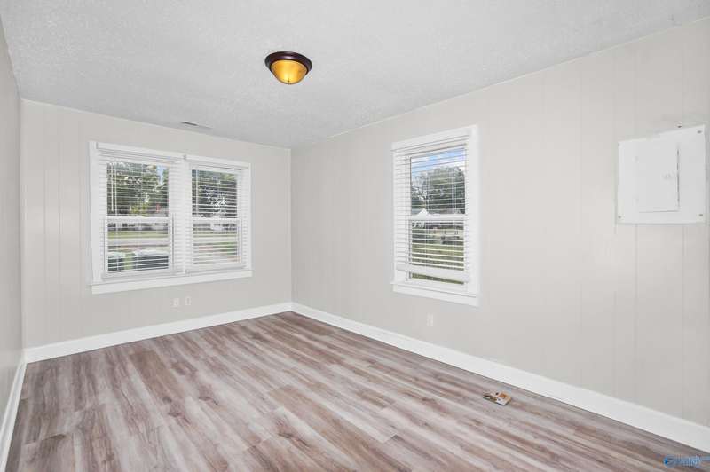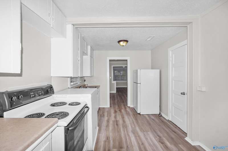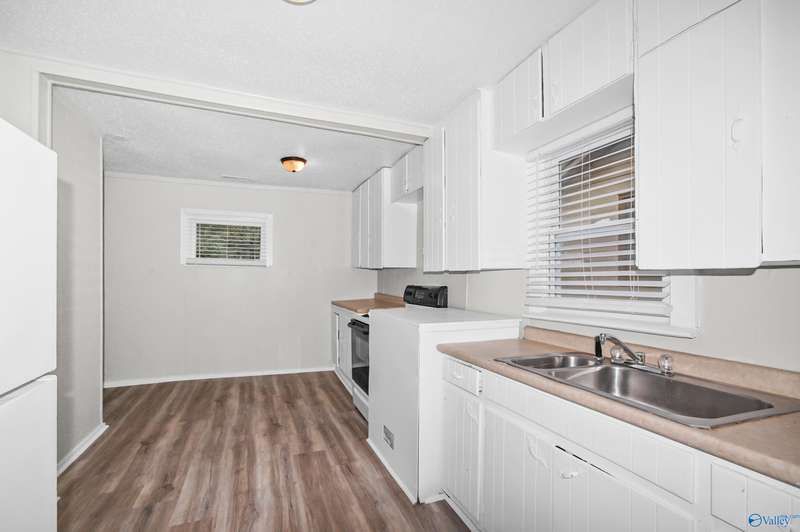 Renovated Great starter home or investment property very close to Campus 805 & Lowe Mill Art District !! New architectural shingled roof, new windows & new blinds, new hvac & new ductwork added, new lvp floors, new electrical panel 7 disconnect, updated outlets & switches, cabinets painted white recent interior paint, & more. Refrigerator & stove to stay, home has laundry room and walk in pantry, desirable lot with a long back yard, conveniently located to Redstone Arsenal.