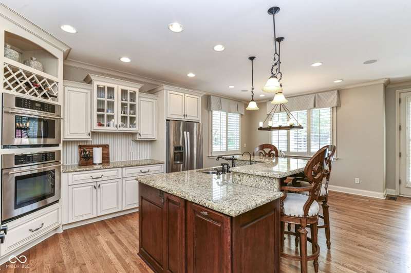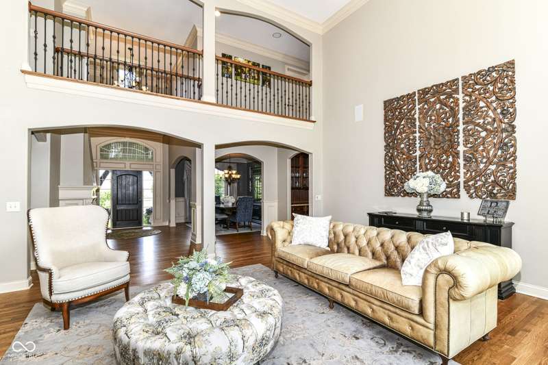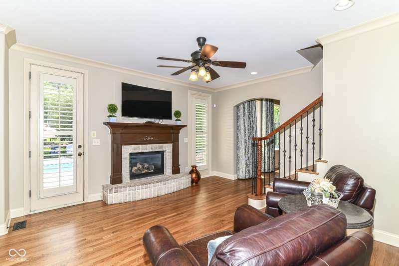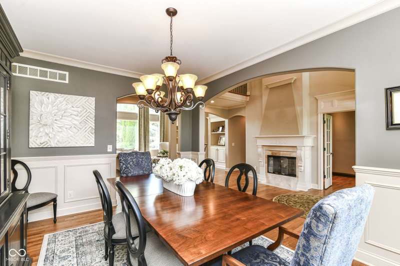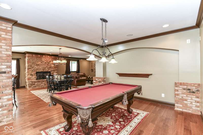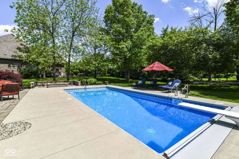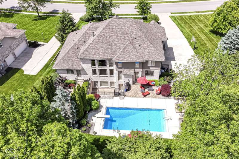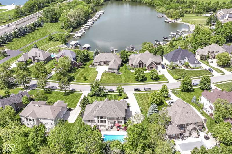Stunning Custom home with super newer large in-ground heated pool just a short walk to your boat dock! Primary Bedroom on main floor with large custom closet. 2 story great room with plenty of natural light! Recently finished hardwoods on main floor & new wood stairs. 2 wonderful laundry rooms on main floor & one on 2nd floor. Kitchen flows into a cozy hearth room with door to patio with gas-line for grill & POOL. Basement boasts: Theatre, Bar, Bedroom, Rec/Billiard Room, WineCellar/Exercise Room, Family Room. Rich Main floor OFFICE with coffered ceiling, builtins & fireplace. 4 bedrooms upstairs with a unique little room off one of the bedrooms for play/drums/crafts/homework ~ you choose. This home is conveniently located close to shopping, schools, dining, Geist, golf, trails...etc!!!