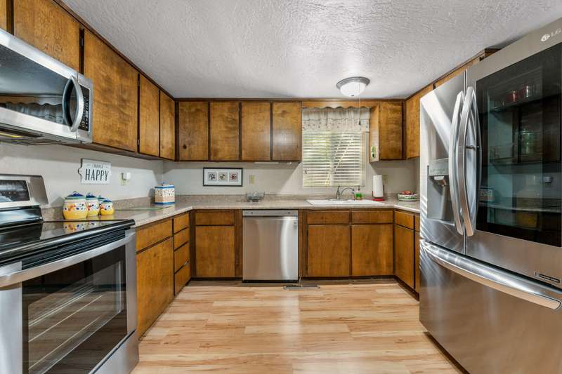 Welcome to this spacious 3-bedroom, 2.5-bath home offering comfort, functionality, and exciting potential. Inside, you'll find both a living room and a cozy family room, providing versatile spaces for relaxation and entertaining. The large deck extends your living area outdoors—perfect for gatherings or quiet evenings. A standout feature is the impressive 30x40 garage, offering abundant storage, workshop space, or the possibility for ADU conversion (buyer to verify). Major updates include a newer roof, HVAC system, and water heater, ensuring peace of mind for years to come. Conveniently located just minutes from North Middle School and Highland Elementary, this property is perfect for anyone seeking a great location. Whether you're looking for a move-in ready home, extra room for hobbies, or a property with income potential, this one has it all!