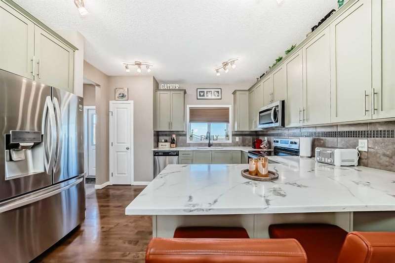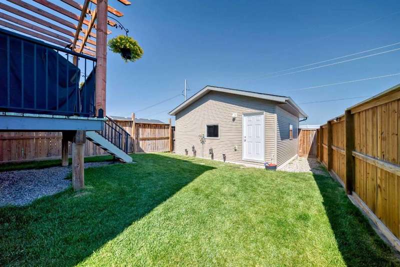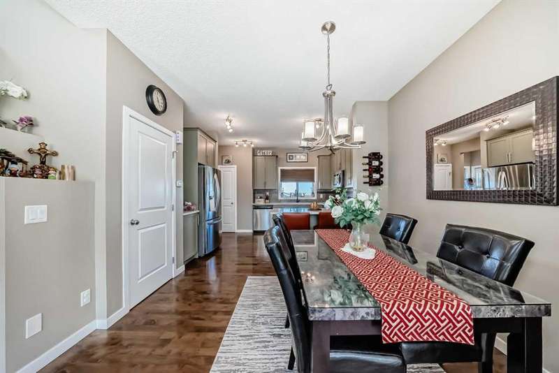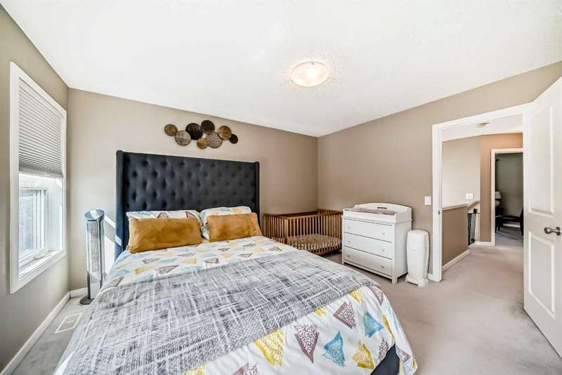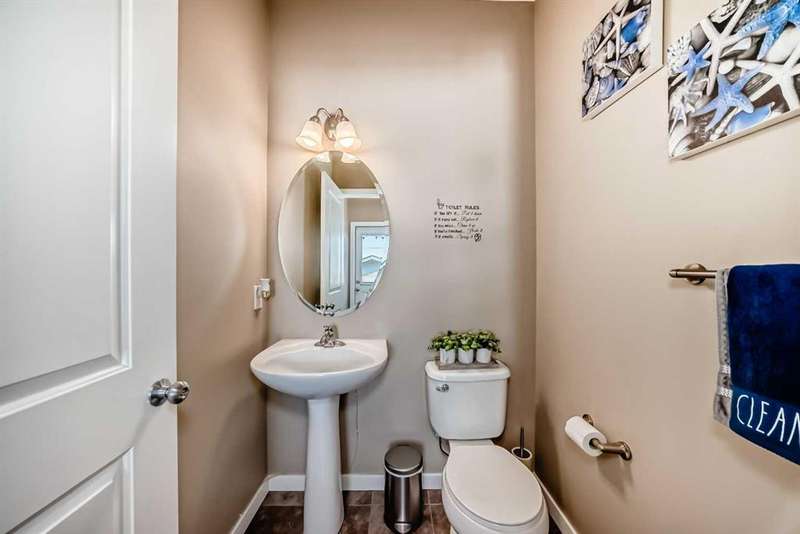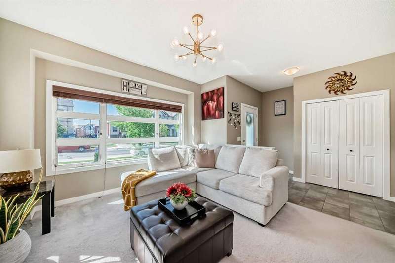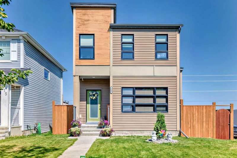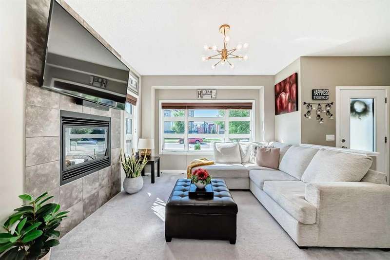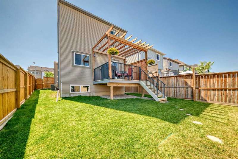 OPEN HOUSE OCTOBER 3 & 4 (FRIDAY & SATURDAY) 1:00 TO 5:00pm. This stunning detached home sits on a desirable corner lot in the vibrant community of Copperfield. As you step inside, you're greeted by a bright open-concept floor plan with soaring 9-foot ceilings. The main level features a spacious living room with a cozy fireplace feature wall, a welcoming dining area with an eating bar, and stylish tiled entries at both the front and rear. The heart of the home is a modern chef's kitchen, complete with ample cabinetry, quartz countertops, stainless steel appliances which were all replaced in 2021. Just off the kitchen, you'll find access to a beautiful deck with a pergola-perfect for morning coffee sips and BBQ with family and friends. A powder room completes the main level. Upstairs, the impressive primary bedroom boasts a walk-in closet and a 4-piece ensuite, plus two additional well-sized bedrooms and a full bathroom. The laundry is also located in the upper floor for easier access. Washer and dryer was replaced in 2022. The fully developed basement offers a large family or recreation room with laminate flooring, plus a versatile den area-ideal for a home office or computer nook. Live comfortably with your centralized airconditiong installed in 2023. Hot water tank was also replaced in 2024. Additional upgrades include the gemstone lights at the front, side and back of the house. With a double detached garage, fenced yard, and backing onto wetlands, this is the perfect family home- move-in ready and packed with value. Close to Stoney Trail and Deerfoot Trail, a must-see home!