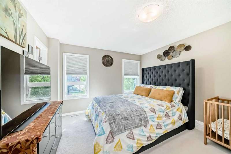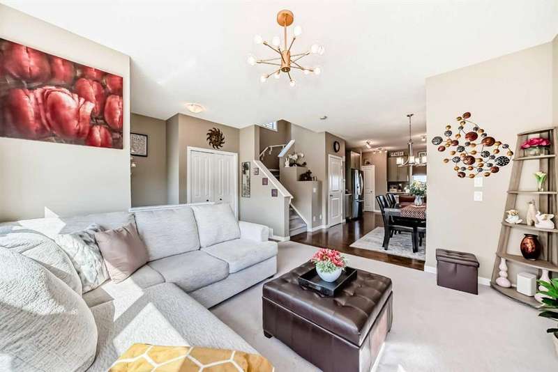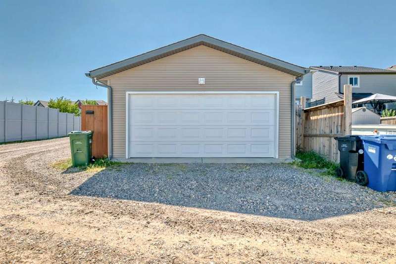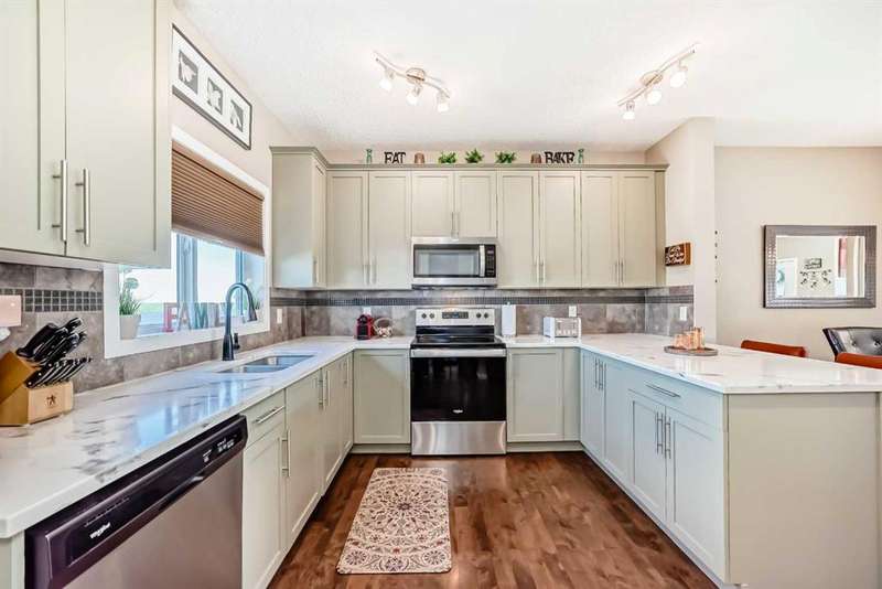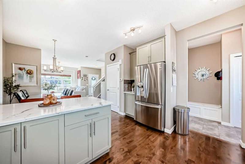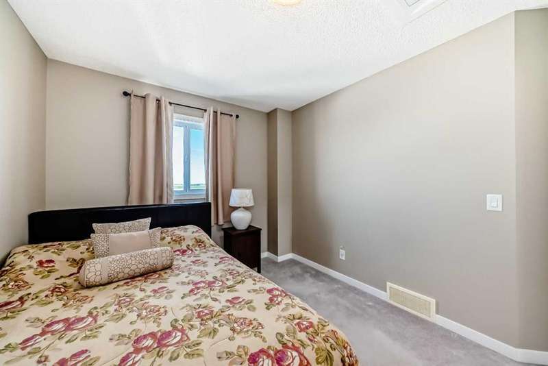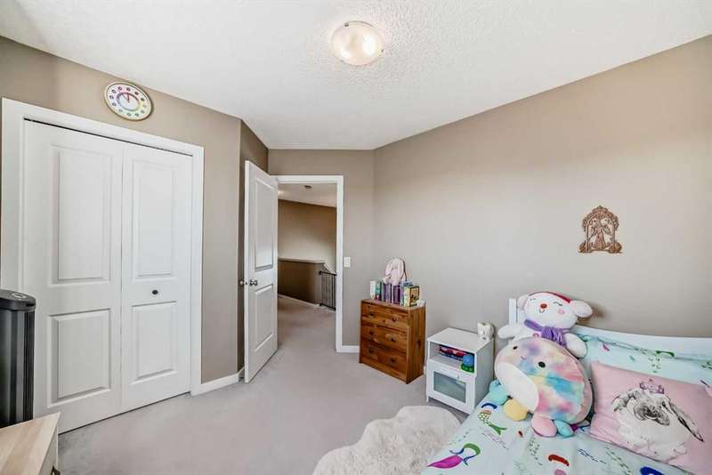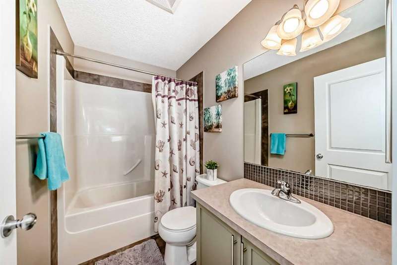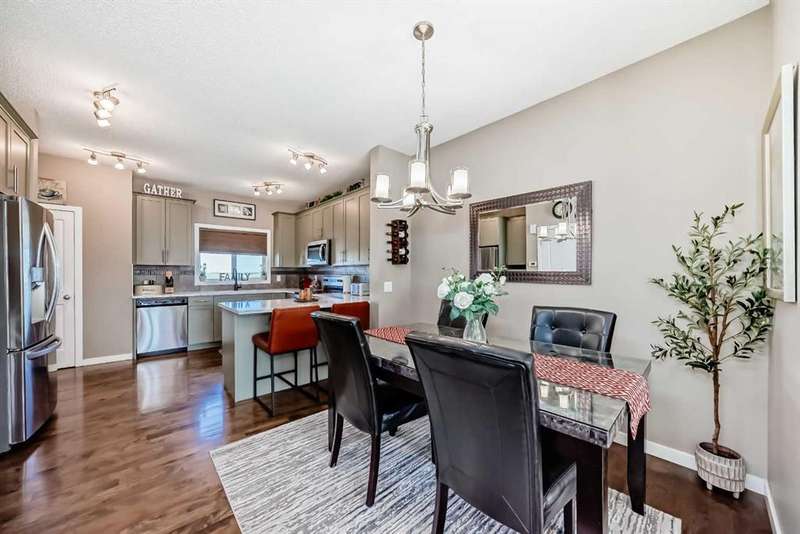 OPEN HOUSE OCTOBER 3 & 4 (FRIDAY & SATURDAY) 1:00 TO 5:00pm. This stunning detached home sits on a desirable corner lot in the vibrant community of Copperfield. As you step inside, you're greeted by a bright open-concept floor plan with soaring 9-foot ceilings. The main level features a spacious living room with a cozy fireplace feature wall, a welcoming dining area with an eating bar, and stylish tiled entries at both the front and rear. The heart of the home is a modern chef's kitchen, complete with ample cabinetry, quartz countertops, stainless steel appliances which were all replaced in 2021. Just off the kitchen, you'll find access to a beautiful deck with a pergola-perfect for morning coffee sips and BBQ with family and friends. A powder room completes the main level. Upstairs, the impressive primary bedroom boasts a walk-in closet and a 4-piece ensuite, plus two additional well-sized bedrooms and a full bathroom. The laundry is also located in the upper floor for easier access. Washer and dryer was replaced in 2022. The fully developed basement offers a large family or recreation room with laminate flooring, plus a versatile den area-ideal for a home office or computer nook. Live comfortably with your centralized airconditiong installed in 2023. Hot water tank was also replaced in 2024. Additional upgrades include the gemstone lights at the front, side and back of the house. With a double detached garage, fenced yard, and backing onto wetlands, this is the perfect family home- move-in ready and packed with value. Close to Stoney Trail and Deerfoot Trail, a must-see home!