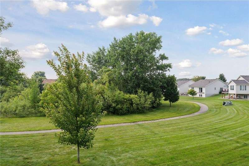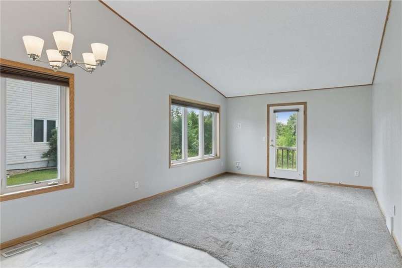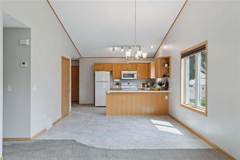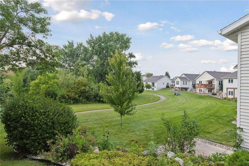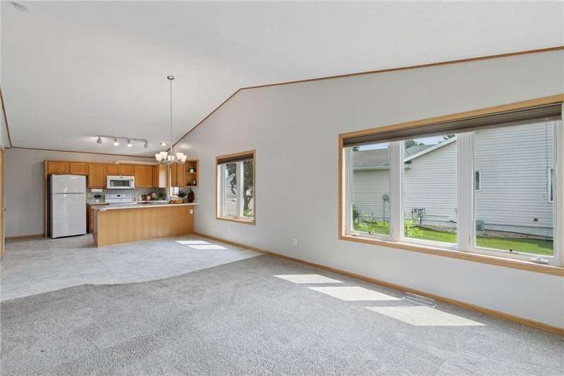 Welcome to this immaculate and spacious end unit, featuring stunning panoramic views of nature and a tranquil pond. Sitting in a private cul-de-sac, this rambler-style home boasts an open floor plan designed for main-level living w/2 bedrooms, ¾ bath, laundry, and future deck. Complimented by a generously sized full walkout lower level that leads to a fantastic BBQ patio, beautifully landscaped backyard space and serene walking paths. Enjoy entertaining at the wet bar, and take advantage of the expansive 3rd bedroom w/an attached full bath in the lower level. Relax on the inviting back porch, a perfect spot to unwind. The property is adorned with a striking rock wall and flourishing perennial garden. This home offers great storage throughout. Freshly painted - ceiling and walls, and a stunning stylish new kitchen/dining flooring. Don’t miss this exceptional opportunity that is move-in ready.