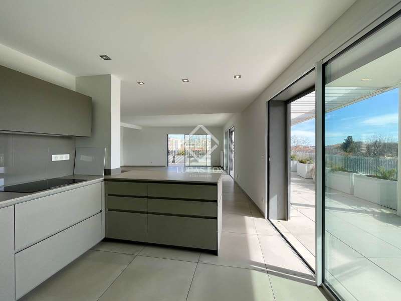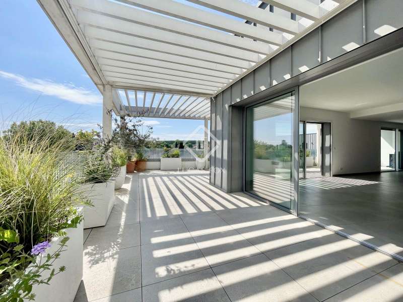 Lucas Fox International Properties, in Les Arceaux de Montpellier, in a recent and luxury residence designed by the famous A+ Architecture firm, top-floor apartment with panoramic views of the city center and its monuments. On the 5th and last floor, penthouse of 185 ² on one level, extended by terraces of 95 m². It consists of an entrance, a triple living room with semi-open kitchen and a back kitchen/laundry room, a dining room, a TV lounge and an office. Night side: 3 bedrooms including a master suite with bathroom and dressing room as well as two bedrooms with shower rooms. All the rooms overlook the terraces which border the apartment and offer a breathtaking view of the Sainte-Anne church, the Palais de Justice, the Jardins du Peyrou and even, on the other side, the famous Pic Saint-Loup. Two underground parking spaces, elevator, common areas with great amenities, disabled access, secure residence with 3 entrances. Close to the Écusson and the Arceaux market. Information on the risks to which this property is exposed is available on the Géorisques website: www.georisques.gouv.fr.