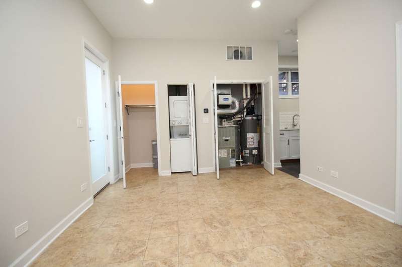 10 foot ceilings so it does not feel like a garden. In-unit washer and dryer, stainless steel appliances, dishwasher, over-the-stove microwave. Outdoor patio. Enjoy easy commuting from the nearby Belmont Blue Line Station, explore vibrant shopping and dining along Milwaukee Avenue, and relax at neighborhood parks like Kosciuszko Park and Brands Park.