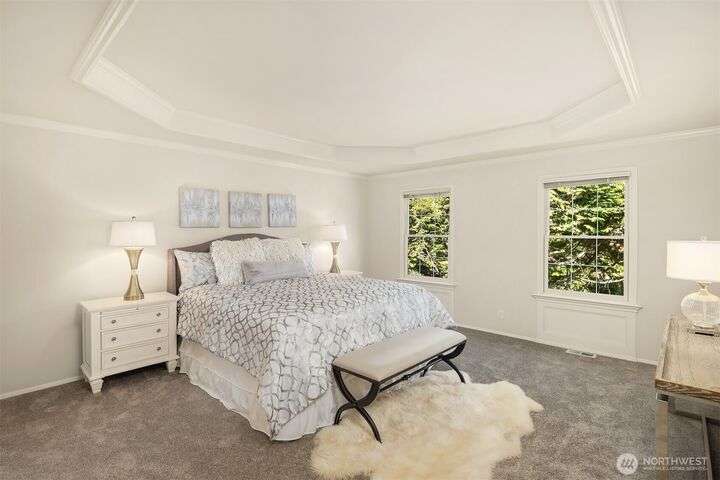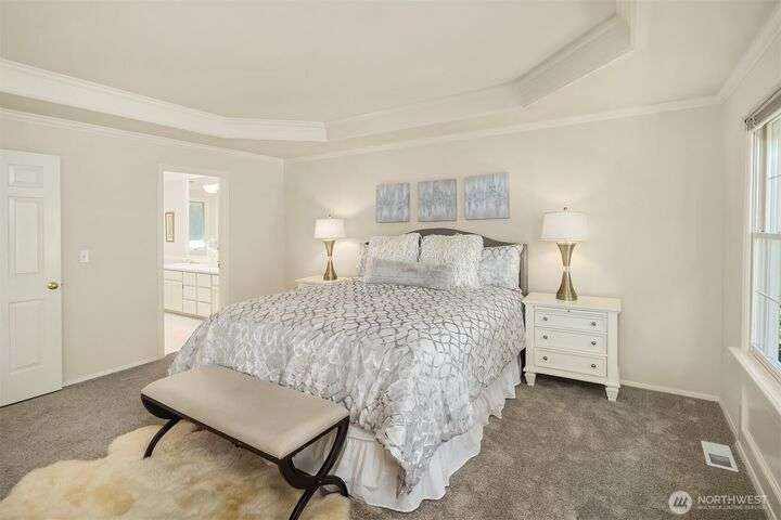 Move into your new home for the holiday season! Built by top builder William Buchan, this one owner home has ideal floor plan, luxury finish, best location for commute and top-rated schools. Freshly updated with brand new carpet, new interior and exterior paint, newer composition roof, this home is move-in ready! Nestled at the end of a private lane off of a level cul-de-sac, steps from the trailhead that leads to Lakemont Park, minutes to Lakemont shopping center. Grand entry with vaulted ceiling. Main floor features living room, formal dining, kitchen, family room. Upper level has primary suite and three additional bedrooms, 2 1/2 bathrooms and oversized 3 car garage. Southern exposure in the backyard, private and great for relaxation.
