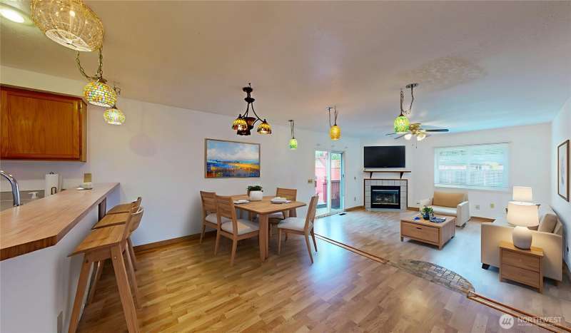 Welcome home to this charming 2-bedroom, 2-bath rambler-style condo on a desirable corner lot in Marysville! The kitchen offers ample cabinetry, generous counter space, and flows into the dining area and family room featuring a cozy gas fireplace and laminate hardwood floors. Insulated windows and skylights fill the home w/ natural light, creating a warm and inviting atmosphere year-round. The primary suite includes a spacious walk-in closet and remodeled bath with a large walk-in shower. Step outside to your private enclosed deck w/ a gate leading to a large open yard space. Includes an individual attached garage. Conveniently located near parks, shopping, dining, and everyday amenities!