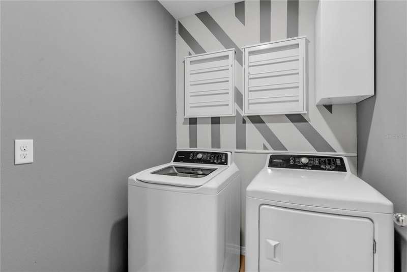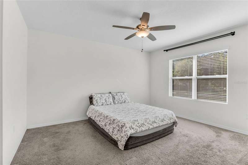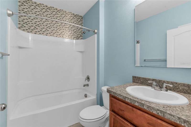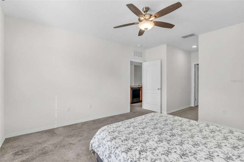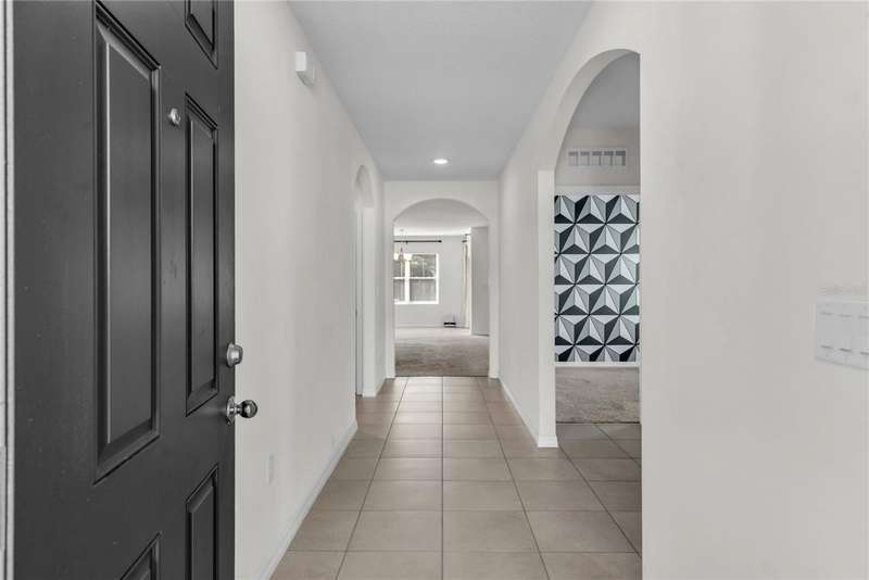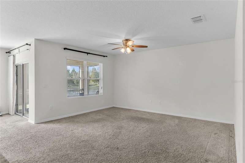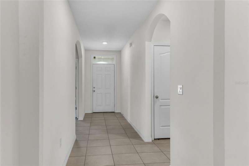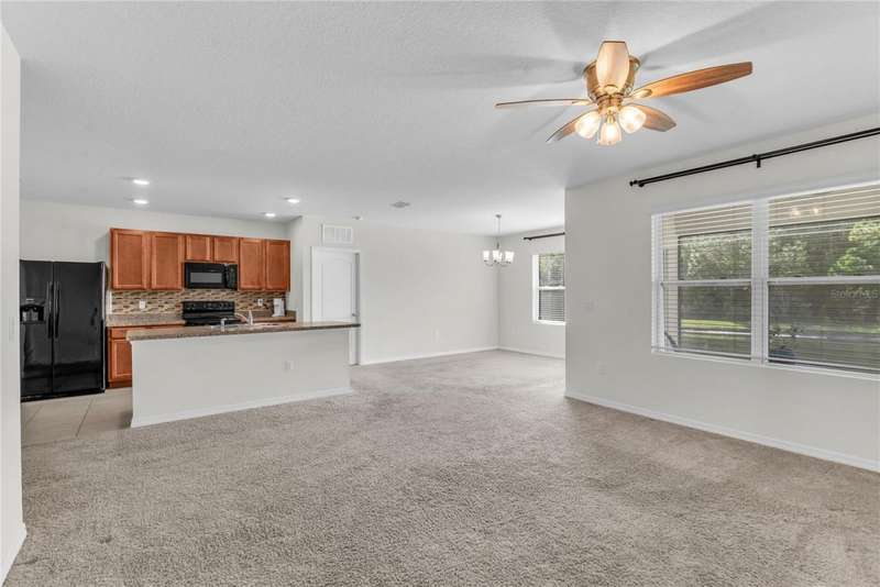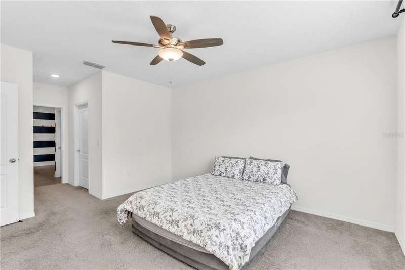 MOVE-IN READY home in the gated Sereno community of Davenport offering 3 bedrooms, 2 bathrooms, a 2-car garage, and a tranquil pond and wooded view with no rear neighbors. This DR Horton 'Aria smart home features a bright open floor plan with neutral paint, ceramic tile in the foyer, kitchen and bathrooms and a split-bedroom layout for privacy. The kitchen opens to the dining and family rooms and includes 36 shaker cabinets, laminate countertops, breakfast bar, stainless steel appliances, a walk-in pantry, and an upgraded backsplash. The spacious family room overlooks the screened-in patio and backyard, providing a peaceful place to enjoy morning coffee or unwind in the evening. The owner's suite offers a large walk-in closet with built-in shelving and an en-suite bath featuring dual 'adult-height vanities, a glass-enclosed shower, water closet, and linen closet. Two guest bedrooms are located near the front of the home and share a full bath with a tub/shower combo and matching vanity height. The indoor laundry room includes the washer, dryer, drying racks, and extra cabinetry for storage. Updates include ceiling fans in all bedrooms, family room, and patio; new kitchen and guest bath backsplashes; new faucets in the owner's bath; interior paint; new microwave; and a new motor and opener for the garage door. The screened patio extends the living space and highlights the beautiful pond and wooded backdrop. Sereno is a completed, gated community featuring two resort-style pools, cabanas, playgrounds, walking trails, and conservation areas, with easy access to Hwy 17/92, I-4, ChampionsGate, Celebration, and Central Florida's theme parks. This well-maintained home by its original owners is move-in ready-offering comfort, privacy, and convenience in one of Davenport's most desirable communities.