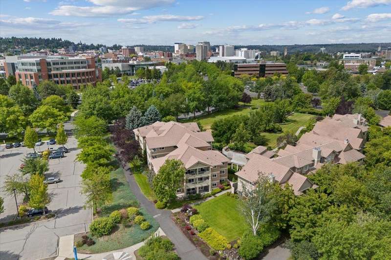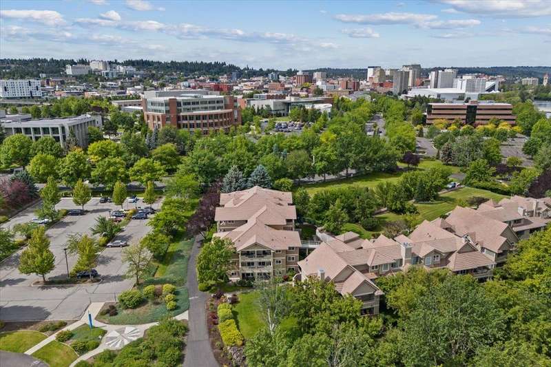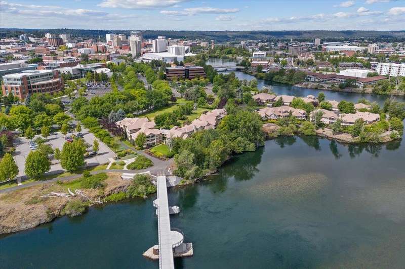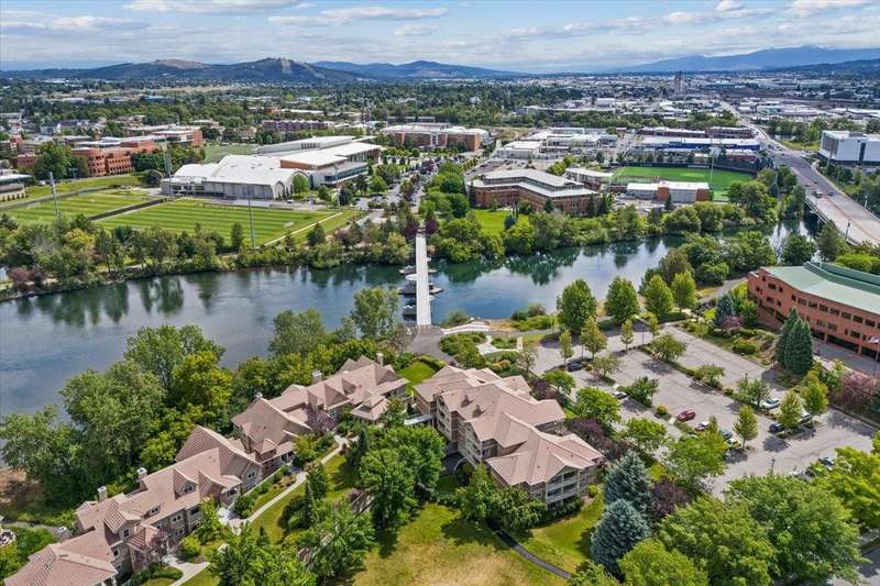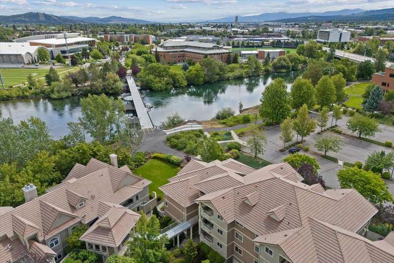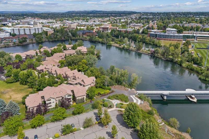 Welcome home to this beautiful, custom condo, overlooking the Spokane River and walking bridge, adjacent to the Centennial Trail. Its perfectly located in the heart of the U-District, so you can walk to Gonzaga, four other major universities and two medical schools. Or take a stroll downtown for a concert, dinner out or shopping. Once you're back home, relax in comfort in your one-of-a-kind condo that used to be two units! This two bedroom, two bath unit has stunning custom woodwork and cabinetry throughout. The main bedroom has a to-die-for walk-in closet as well as a built-in office space. Enjoy entertaining friends in the formal dining area, which is adjacent to a cozy living room with gas fireplace and gorgeous views off the deck. To top it off, this condo has not one, not two, but FOUR parking spaces and two storage units! If you don't have four vehicles, you can sell or rent the spaces out and enjoy some passive income! Call your agent now to see this unique home!