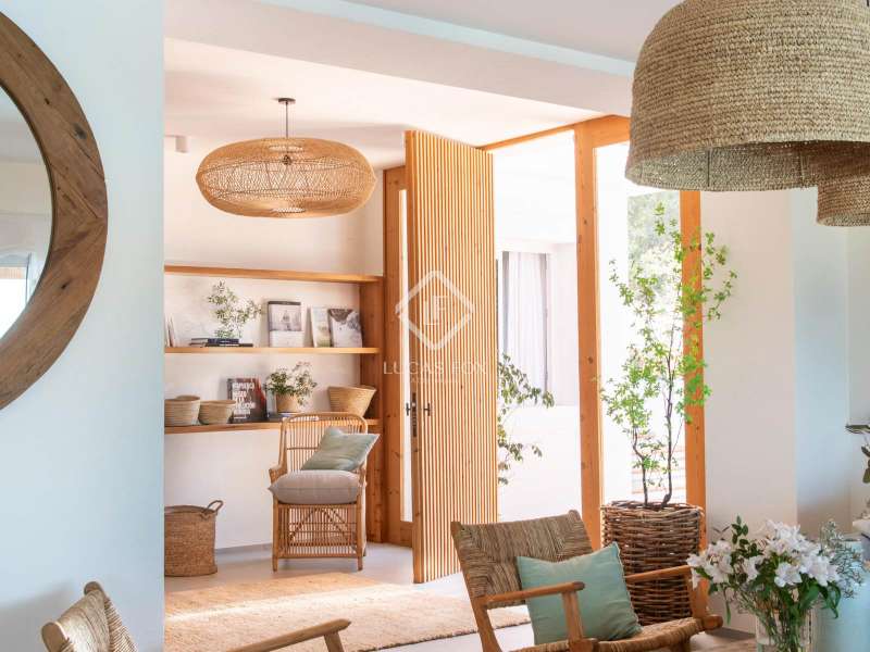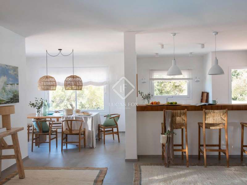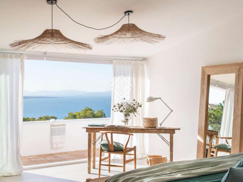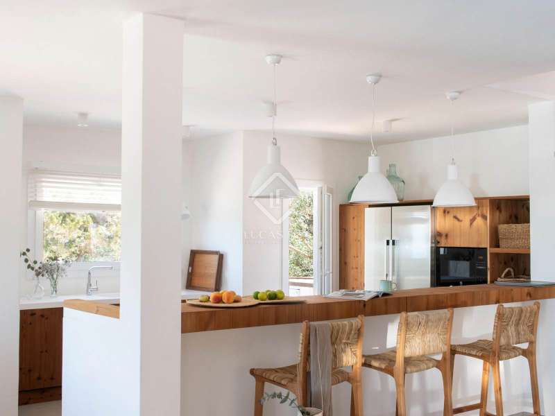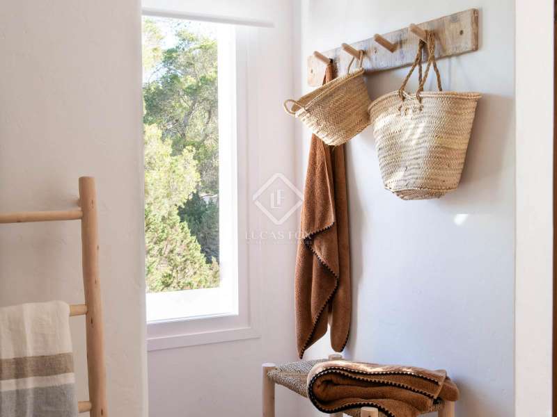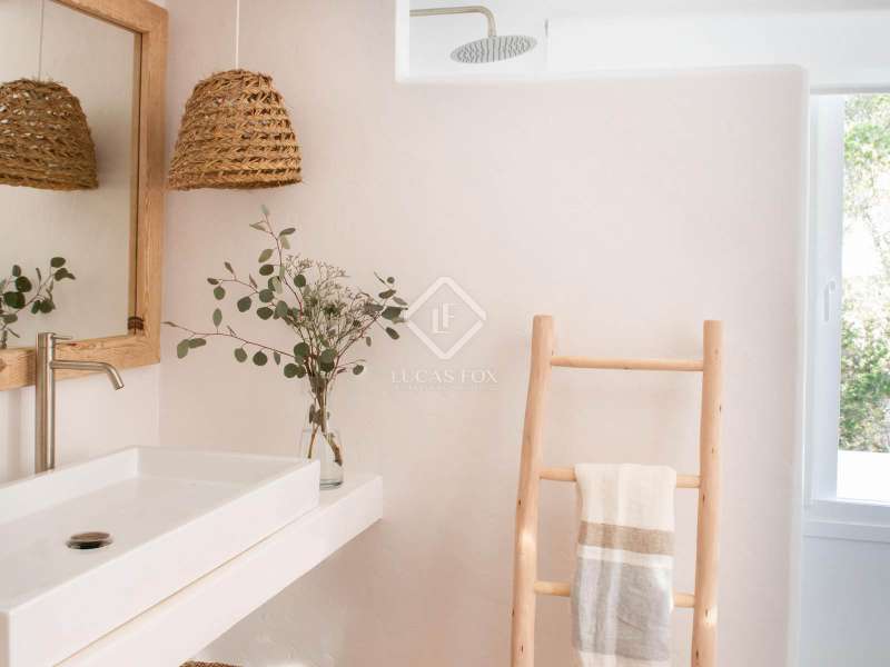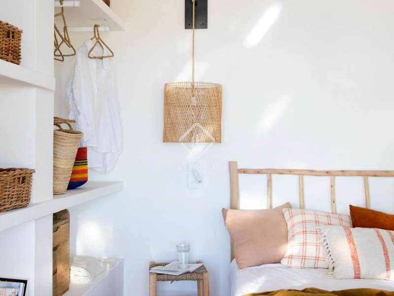This majestic residence, with its capacity to comfortably accommodate up to 14 people, has been meticulously designed and decorated to offer a truly unforgettable experience. Every corner of this house radiates authentic rustic charm, where soft, warm shades harmoniously intertwine with natural elements such as wood and natural fibres, thus creating a cosy and relaxing atmosphere that invites you to immerse yourself in the serenity of the island. Upon entering the main floor of this magnificent residence, one finds a spacious living room that invites relaxation and enjoyment. Equipped with comfortable neutral linen sofas, including a luxurious double chaiselongue, this space is the perfect setting to share cherished moments with family and friends. From this cosy living room, you access a fully equipped kitchen, where a long wooden bar invites you to enjoy unforgettable culinary moments. The main floor also houses two charming bedrooms, one with a comfortable double bed and the other with four cosy single beds, as well as a guest toilet for guests' convenience. The main floor porch not only offers an outdoor space to enjoy the sea breeze and warm Mediterranean sun, but also leads to a spectacular pool that blends harmoniously with the surrounding landscape. From here, you can enjoy stunning panoramic views of the picturesque island of Formentera, thus creating an idyllic environment to disconnect and reconnect with nature. Ascending to the first floor, guests are greeted by two elegant bedrooms with spacious double beds and a luxurious main suite, each with its own private bathroom. From this level, there is also access to a magnificent terrace that extends towards a tower, from where you can contemplate the incomparable beauty of the island's characteristically impressive sunsets. In addition to the main property, the property has two additional bedrooms that add even more comfort and privacy to the accommodation experience. One of these bedrooms is located adjacent to the main villa and offers a double bed for a peaceful and relaxing room, while the other is located in a quaint bungalow accessed from the porch/terrace, giving guests a sense of exclusivity and serenity. Each of the rooms in this spectacular residence is equipped with its own private bathroom and air conditioning, thus guaranteeing maximum comfort and convenience for all guests. The warm and natural decoration of each space creates a welcoming and homely atmosphere that invites you to feel at home from the moment you cross the threshold of this exceptional property. Furthermore, it is important to highlight that the property has a fully valid tourist licence, which not only adds undeniable value to it, but also makes it an extremely attractive and strategic investment opportunity for those seeking to invest in the prosperous island tourist market. This licence guarantees not only the legality of the tourist operation, but also its long-term profitability, making this property an incomparable option for those who want to combine luxury and comfort with a solid and safe investment in the paradise of Formentera.