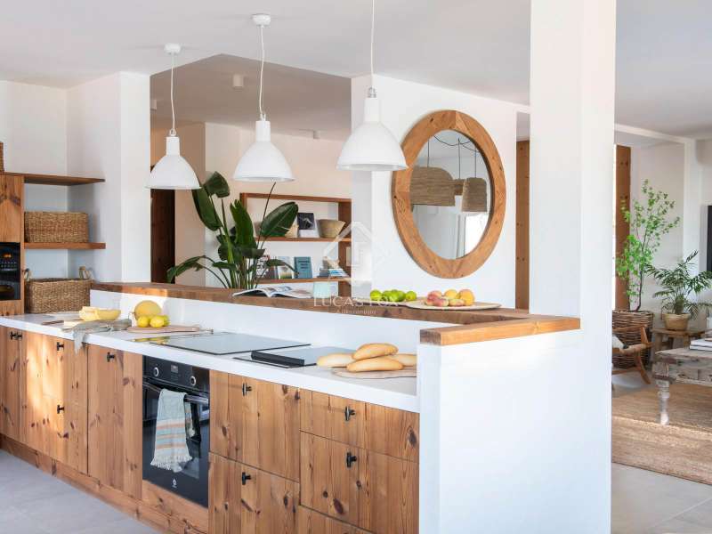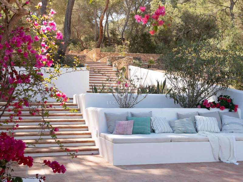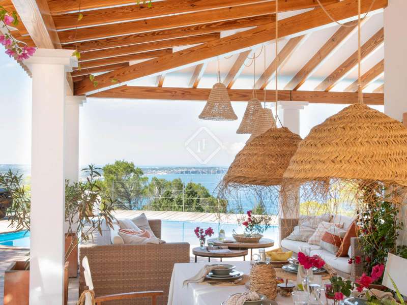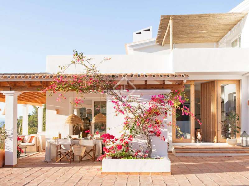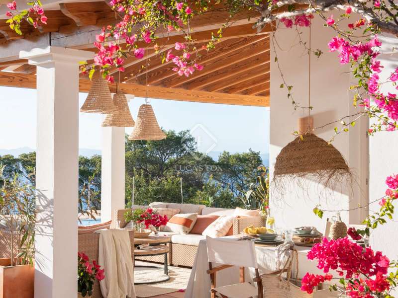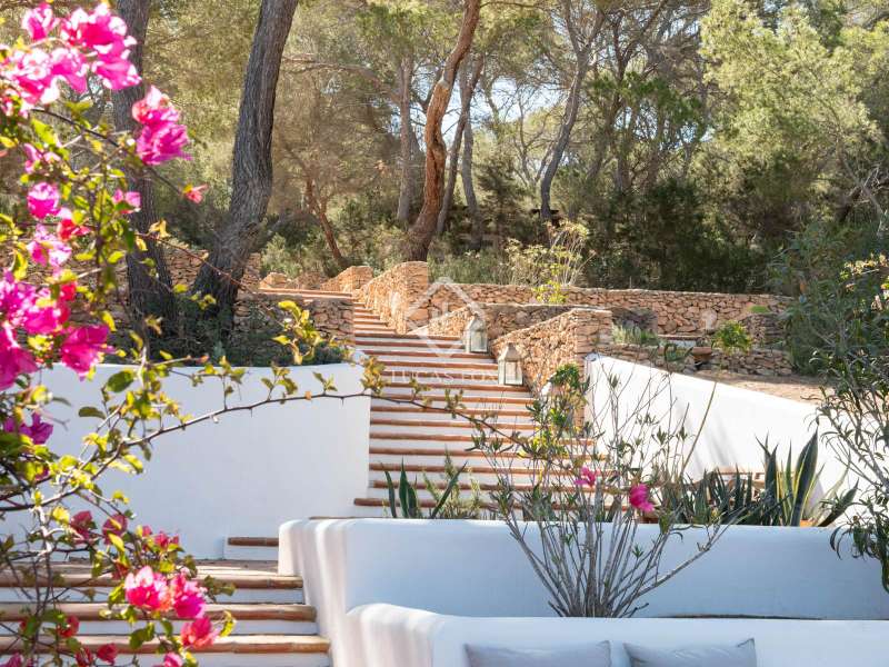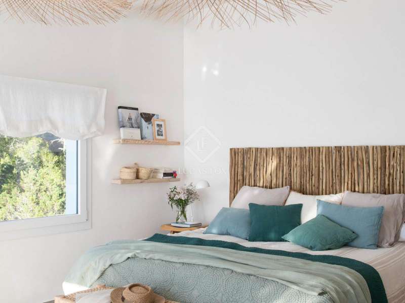 This majestic residence, with its capacity to comfortably accommodate up to 14 people, has been meticulously designed and decorated to offer a truly unforgettable experience. Every corner of this house radiates authentic rustic charm, where soft, warm shades harmoniously intertwine with natural elements such as wood and natural fibres, thus creating a cosy and relaxing atmosphere that invites you to immerse yourself in the serenity of the island. Upon entering the main floor of this magnificent residence, one finds a spacious living room that invites relaxation and enjoyment. Equipped with comfortable neutral linen sofas, including a luxurious double chaiselongue, this space is the perfect setting to share cherished moments with family and friends. From this cosy living room, you access a fully equipped kitchen, where a long wooden bar invites you to enjoy unforgettable culinary moments. The main floor also houses two charming bedrooms, one with a comfortable double bed and the other with four cosy single beds, as well as a guest toilet for guests' convenience. The main floor porch not only offers an outdoor space to enjoy the sea breeze and warm Mediterranean sun, but also leads to a spectacular pool that blends harmoniously with the surrounding landscape. From here, you can enjoy stunning panoramic views of the picturesque island of Formentera, thus creating an idyllic environment to disconnect and reconnect with nature. Ascending to the first floor, guests are greeted by two elegant bedrooms with spacious double beds and a luxurious main suite, each with its own private bathroom. From this level, there is also access to a magnificent terrace that extends towards a tower, from where you can contemplate the incomparable beauty of the island's characteristically impressive sunsets. In addition to the main property, the property has two additional bedrooms that add even more comfort and privacy to the accommodation experience. One of these bedrooms is located adjacent to the main villa and offers a double bed for a peaceful and relaxing room, while the other is located in a quaint bungalow accessed from the porch/terrace, giving guests a sense of exclusivity and serenity. Each of the rooms in this spectacular residence is equipped with its own private bathroom and air conditioning, thus guaranteeing maximum comfort and convenience for all guests. The warm and natural decoration of each space creates a welcoming and homely atmosphere that invites you to feel at home from the moment you cross the threshold of this exceptional property. Furthermore, it is important to highlight that the property has a fully valid tourist licence, which not only adds undeniable value to it, but also makes it an extremely attractive and strategic investment opportunity for those seeking to invest in the prosperous island tourist market. This licence guarantees not only the legality of the tourist operation, but also its long-term profitability, making this property an incomparable option for those who want to combine luxury and comfort with a solid and safe investment in the paradise of Formentera.