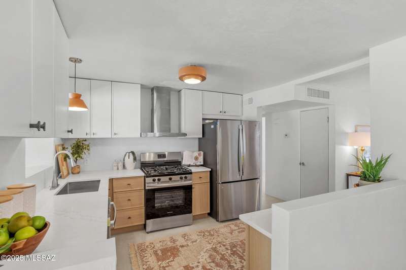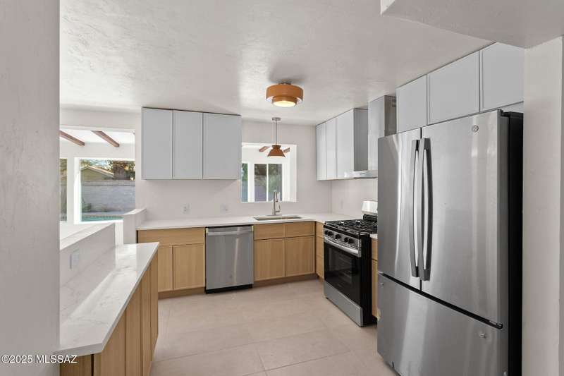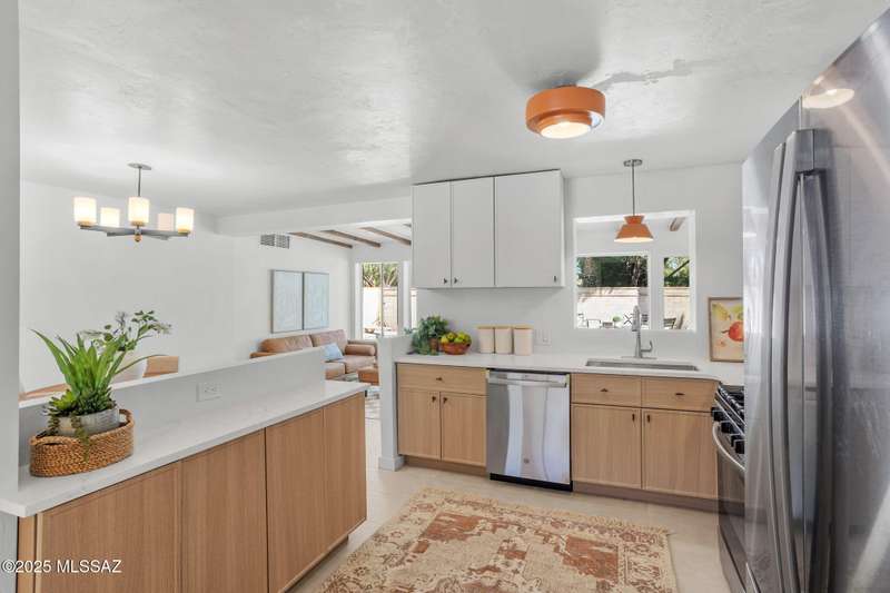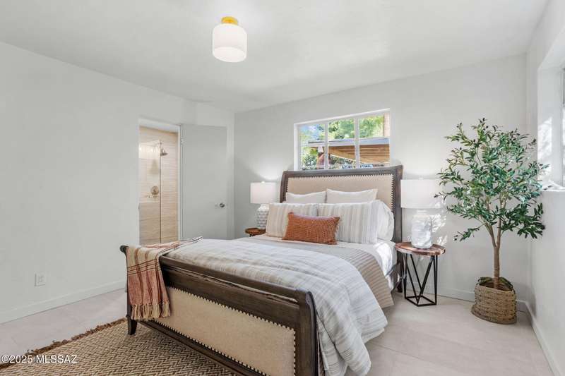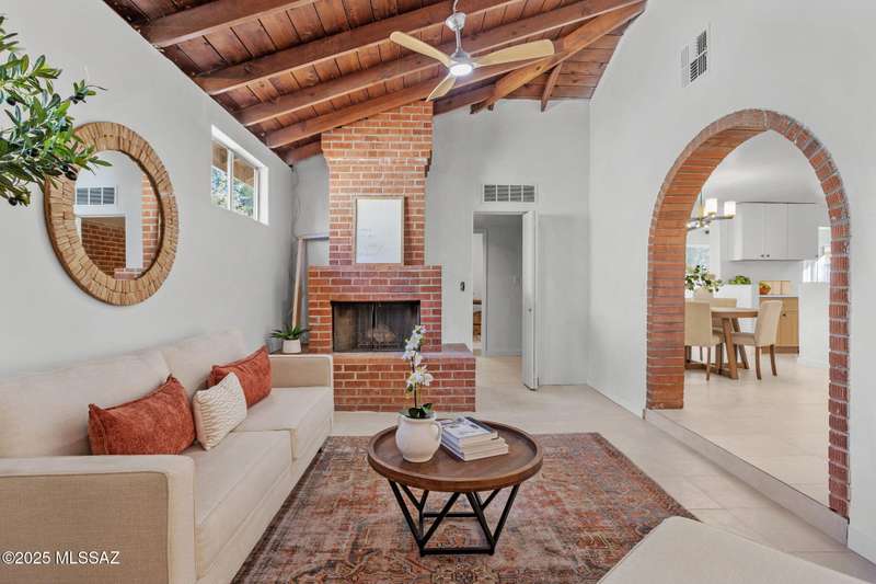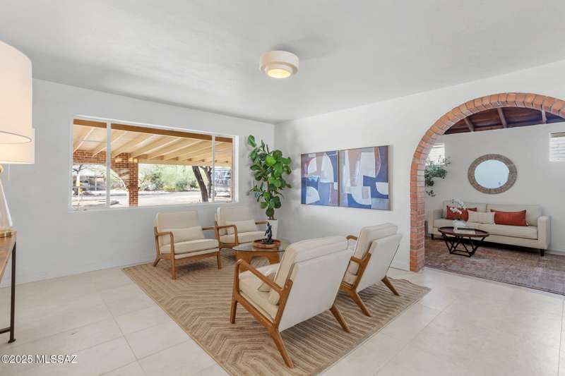 1952 vintage brick home Newly Renovated with a brand new open-kitchen, new tile flooring throughout house, new water heater, completely updated exposed beam family room, flat roof recoated, updated primary bath and guest bath. Located on a nearly 0.25 acre lot, this charming residence offers a rare blend of classic style and outdoor enjoyment--including private direct access to Linden Park. 4 bedroom 2 baths and 1,940sf this home perfectly balances mid-century character with modern updates and thoughtful design. Located close to shopping, dining, and 4.5 miles to the University of Arizona, it's the ideal blend of vintage charm and modern comfort in the heart of Tucson.