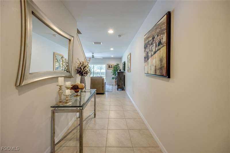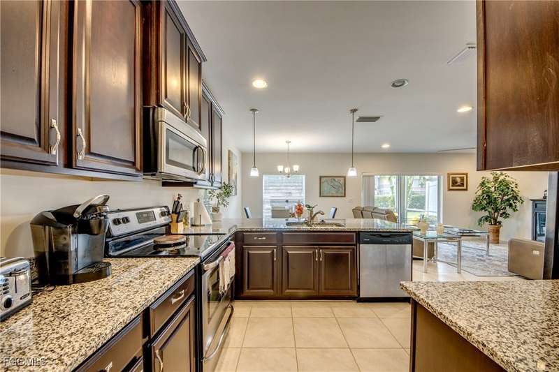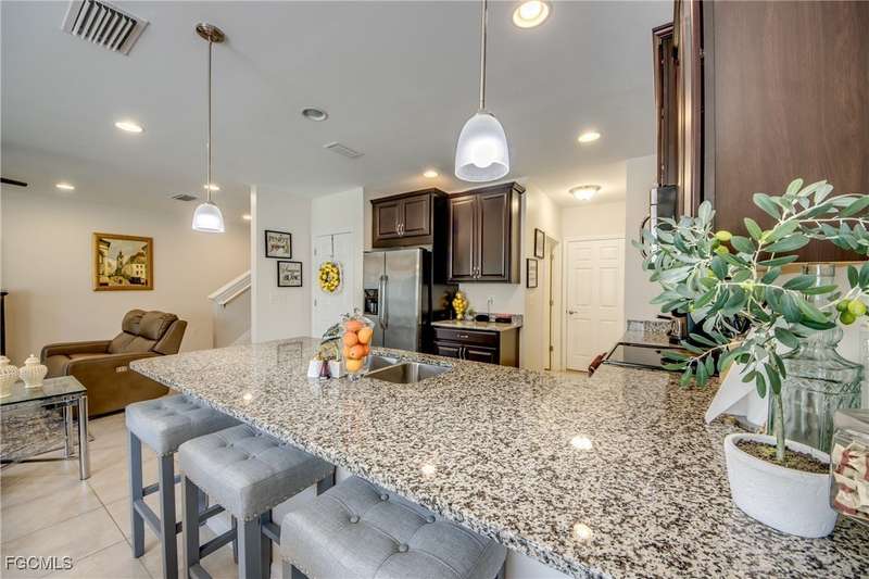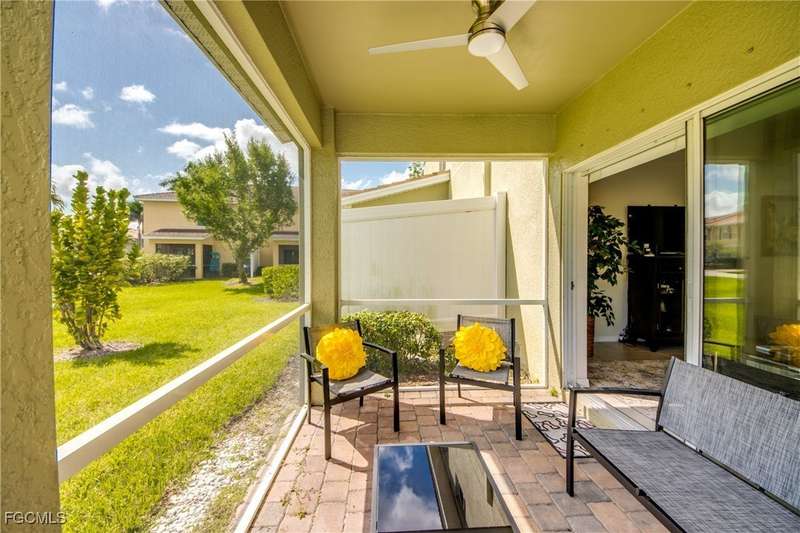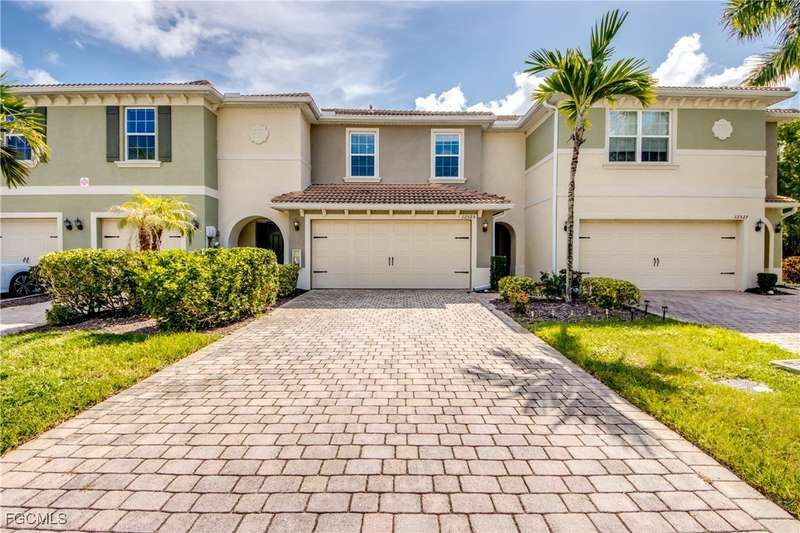 BIG PRICE REDUCTION! Make your showing appointment now! Only SEASONALLY OCCUPIED and never rented, this ONE-OWNER TOWNHOME is located within the popular GATEWAY community in South Fort Myers. TILED FIRST FLOOR includes OPEN CONCEPT living room/dining room/kitchen with direct access to 2 CAR GARAGE and sliders to SCREENED LANAI and backyard. Kitchen features GRANITE COUNTERS, 42" high cabinets, STAINLESS STEEL APPLIANCES, and PANTRY. Living area is in rear of home and provides PRIVACY. All 3 bedrooms, 2 full baths, and LAUNDRY IS UPSTAIRS. Primary bedroom overlooks backyard and has ENSUITE BATH WITH DUAL SINKS and step-in tiled shower. The Mediterranean style buildings have PAVER DRIVEWAYS and tile roofs. Hammock Cove is a small neighborhood with only 136 units and a community POOL just steps away. The master PLANNED GATED COMMUNITY encompasses 3,000 acres that include miles of jogging, walking, biking & hiking paths, soccer & baseball fields, playgrounds, a dog park & the Gateway community pool. For additional amenities consider membership at THE CLUB AT GATEWAY which offers golf, tennis, a resort-style pool and more. The LOCATION IS AWESOME...minutes away from shopping, dining, Southwest Florida International Airport, 2 spring training baseball complexes, and outstanding SW Florida beaches. X flood zone! LOW FEES! Buy now to ensure your warm winter getaway or permanent residence in The Sunshine State.