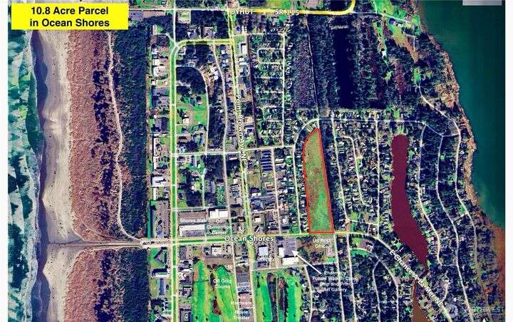 Largest remaining vacant commercial development site in downtown Ocean Shores. 10.8 acres, cleared corner parcel situated across from Post Office and walking distance to central business district and the ocean beaches. Highest commercial zoning - B2 allows many uses. Great location for RV park, retail, multi-family, mini storage, Planned Unit Development with cottages, strip mall for local services. Room for any combination of these projects. Across the street there is a sidewalk leading to downtown retail and beaches.