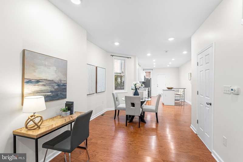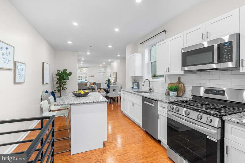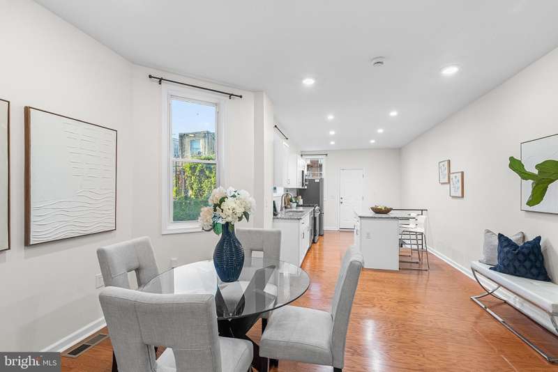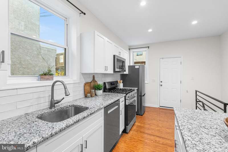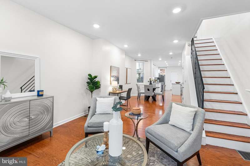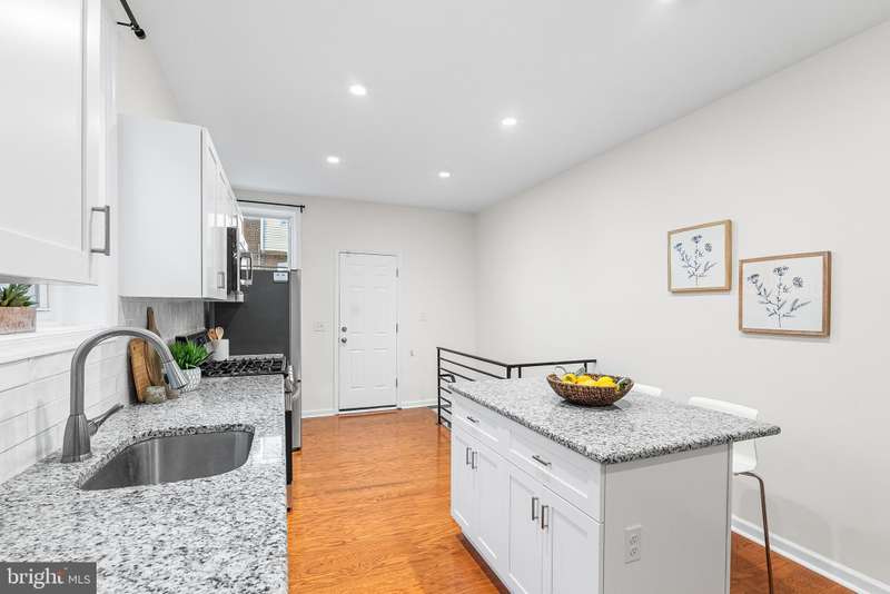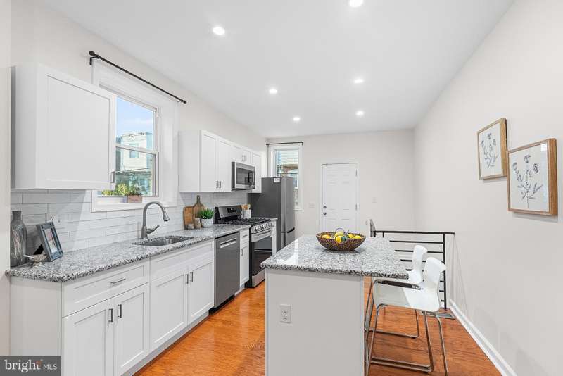 **Modern & Meticulously Renovated Gem in Cobbs Creek ** Welcome to this truly turn-key rowhome in the vibrant Cobbs Creek neighborhood. Renovated with exceptional care by an owner who had intended to stay, this home stands apart from a typical "flip." The 2024-2025 renovation included brand-new floors, walls, kitchen, appliances, updated electrical, and more, all designed to create a modern, inviting space. Step onto the newly rebuilt porch and into a bright, open-concept living and dining area featuring newly installed hardwood floors and a charming decorative fireplace. A convenient half bath is also located on this level. The updated kitchen is attractive and functional, complete with a center island for seating, beautiful granite countertops, and upgraded appliances. Upstairs, you'll find three bedrooms, including the primary suite-a tranquil retreat with two large closets and a sun-filled bay window. The full bath, with a stonetop vanity and skylight, are also located on this floor. The finished basement offers a versatile bonus space perfect for a home gym, office, or media room, along with a separate laundry room. Outside, enjoy easy alleyway access to a private back patio, ideal for grilling or an outdoor dining set. You're just a short walk to the expansive green spaces of Cobbs Creek Park and the community hub of Malcolm X Park. With SEPTA just blocks away, you have easy access to the universities of Drexel and Penn, center city, Baltimore Ave, and anywhere else you want to be, all from your charming home base on Irving Street.