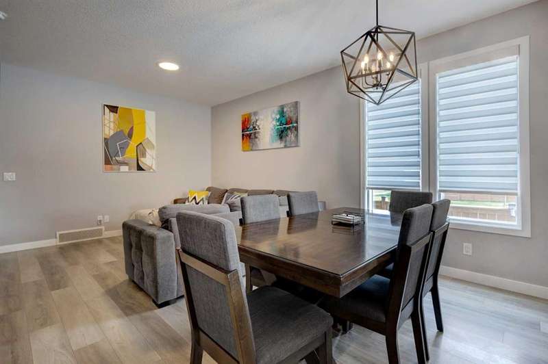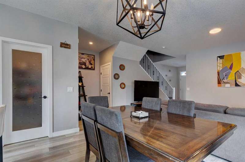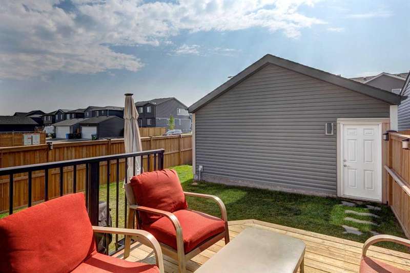 Built in 2022, this amazing home shows better than new and is set on a huge, wide corner lot that has been meticulously landscaped with new fencing, lush lawns, scalloped flower beds and a private deck - all the costly, time-intensive work already completed so you can simply enjoy. Pride of ownership is evident inside and out. Step into the main floor where you'll find luxury vinyl plank flooring and 9' knockdown ceilings. A versatile flex room can easily serve as a 4th bedroom or home office, conveniently located near a 2-piece bath. the open plan design seamlessly connects the central family room, family sized dining area and elegant peninsula style kitchen w/quartz counters, lunch counter, ceiling height cabinets, a gorgeous backsplash, stainless steel appliances, motorized custom Zebra blinds and a walk in pantry. Upstairs offers 3 spacious bedrooms including a primary suite with spa like ensuite featuring dual sinks, separate shower, tile skirted soaker tub and a walk in closet w/custom built in's for easy organization. the upper level also includes laundry and a 4 piece family bath. the undeveloped lower level is wide open with utilities smartly tucked away to optimize useable space. A double detached with EV charger completes the package. Additional upgrades include metal staircase railings, tankless hot water, 6 solar panels, paved alley, smart door locks, newer fencing and deck, plus 2 gates for entry into the yard from both the front and back. This home offers exceptional value, unbeatable curb appeal and belongs at the top of your MUST SEE list !! One of Calgary's up and coming communities - Belmont is encircled by 194th Avenue, Sheriff King Street & 210th Avenue, with direct access to Macleod Trail and Stoney Trail. So it’s extra easy to run out for groceries, get a head start on family road trips, or reach home faster at the end of a long day.